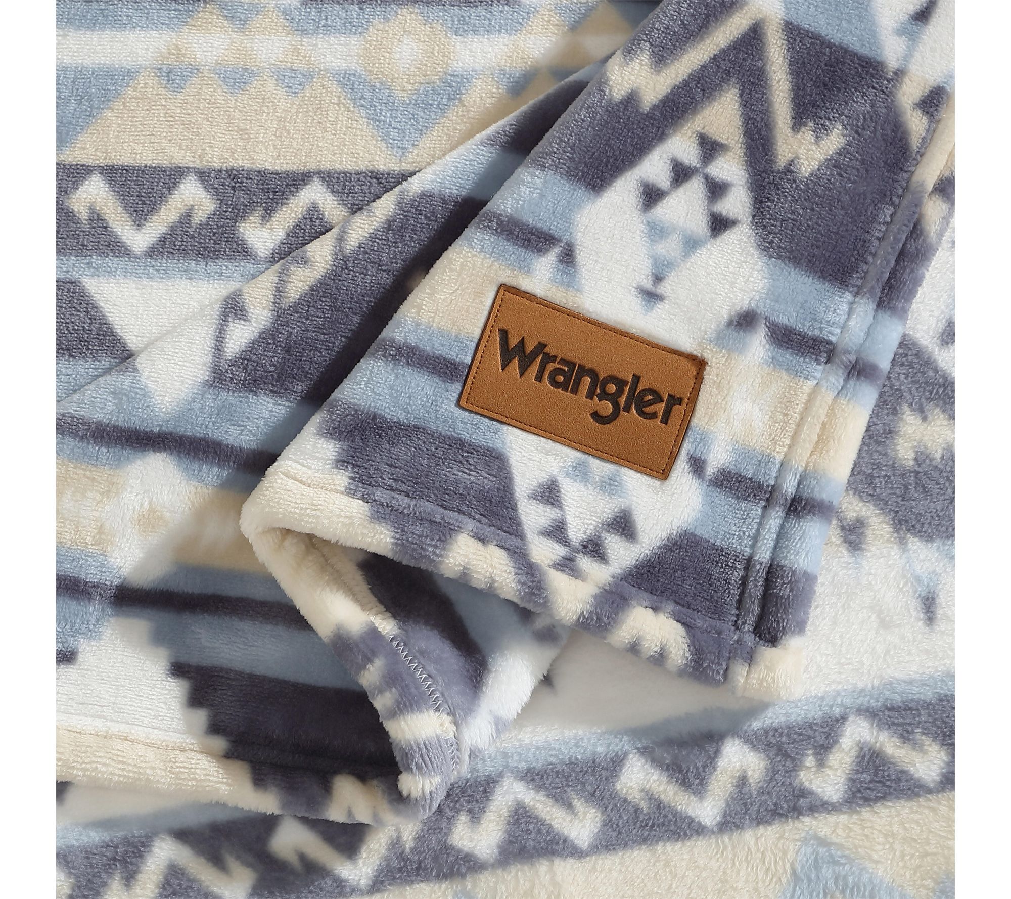 Wrangler Jesse Linen Blue Reversible Plush 50"X70" Throw