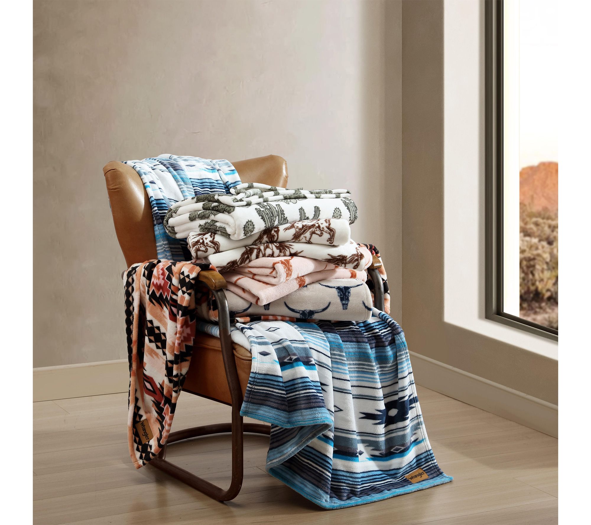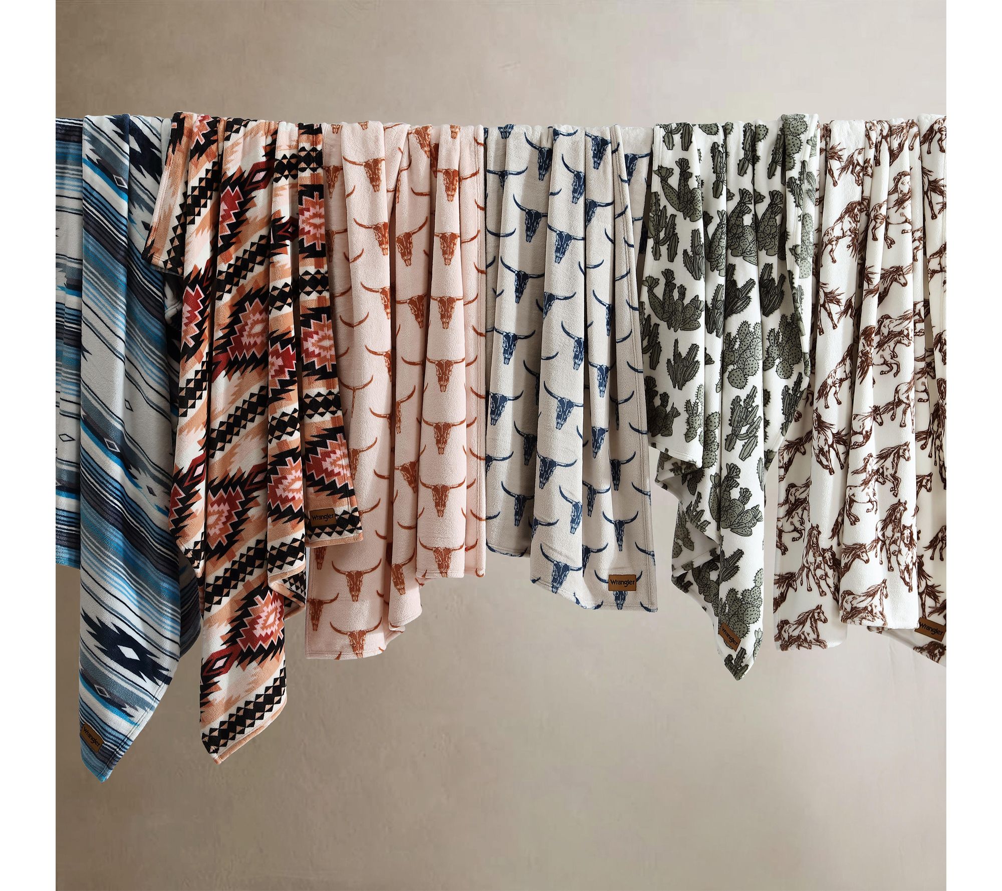 Turn up the warmth and charm in your home with this linen blue throw, crafted to deliver both comfort and character. The eye-catching geometric pattern inspired by classic western motifs brings a dash of contemporary style, while the plush fabric creates an irresistibly soft layer for unwinding on the couch, bed, or even around an outdoor fire. From Wrangler.