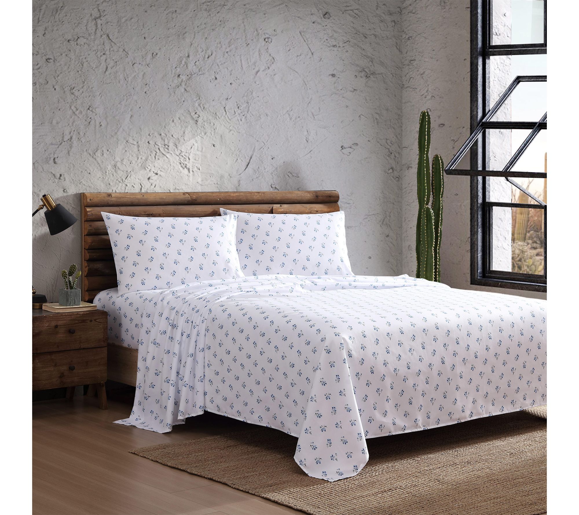Let the charm of the open range inspire your bedroom with this Wrangler King Sheet Set, featuring a hand-drawn ditsy blue floral pattern that blends rugged character with timeless comfort. Crafted from ultra-soft microfiber that grows even smoother after every wash, this sheet set brings cozy style whether paired with quilts, comforters, or layered with your favorite bedding. From Wrangler.