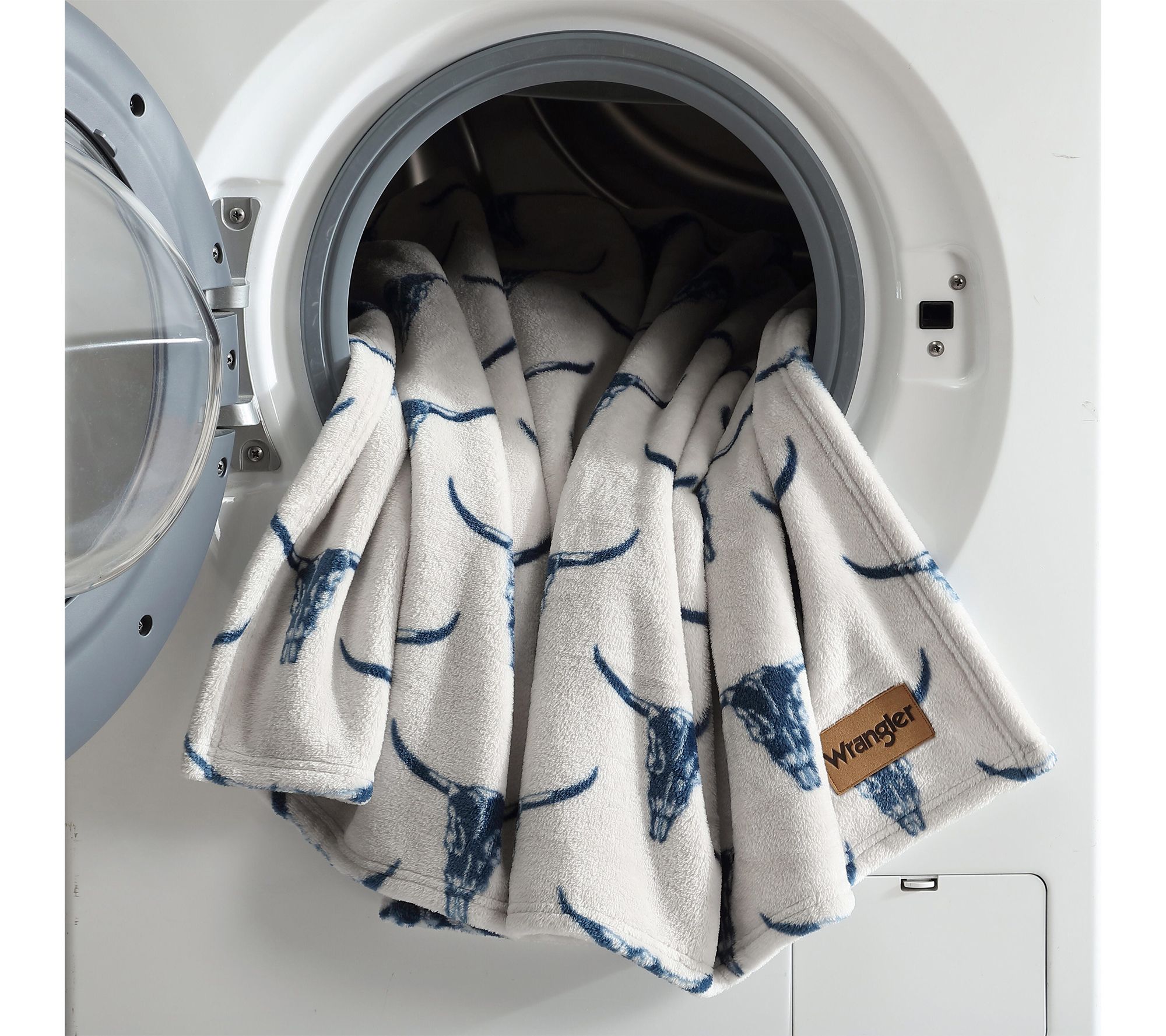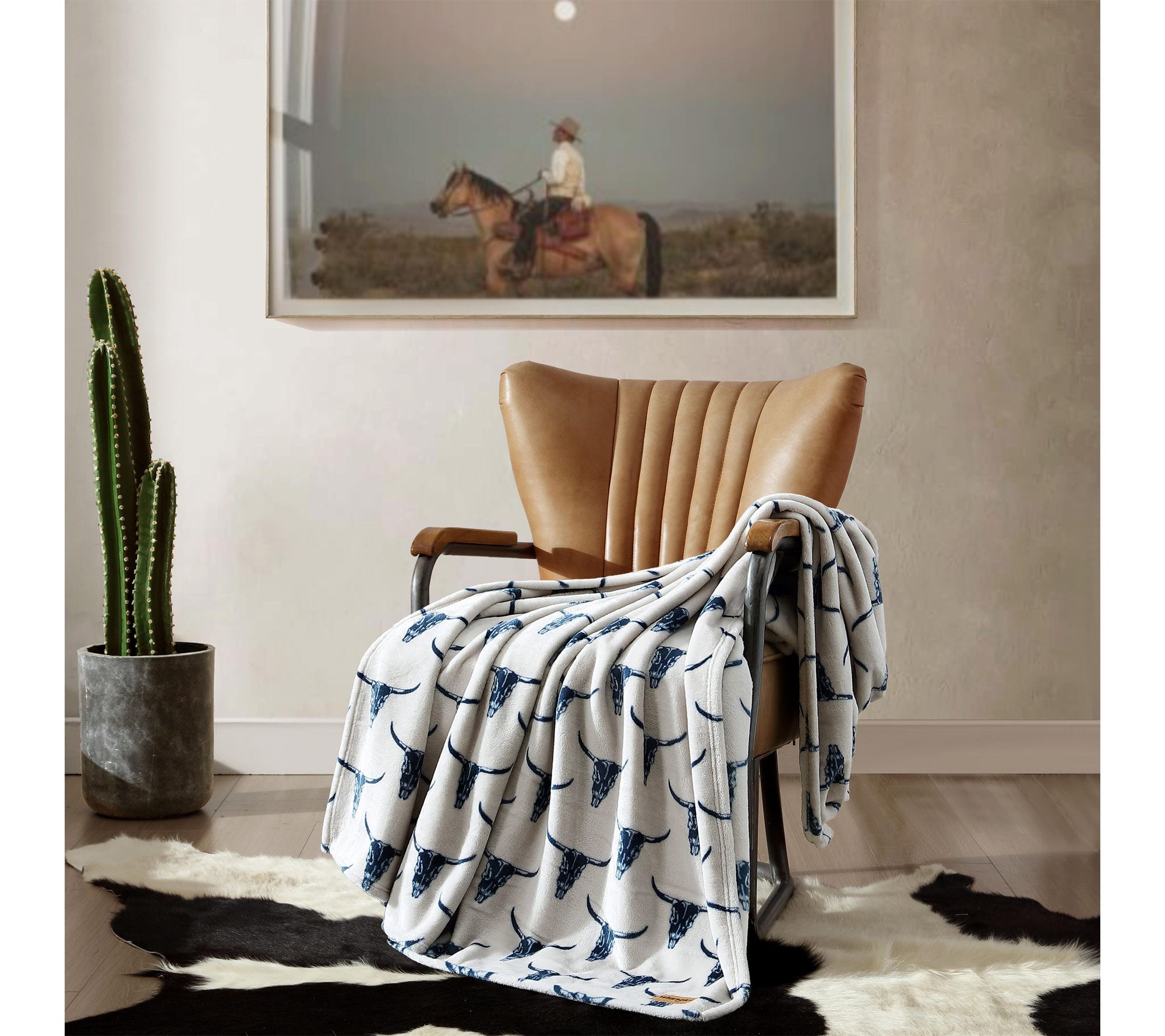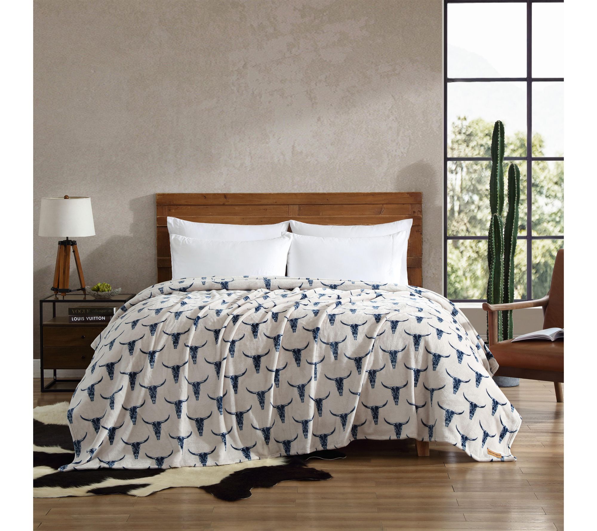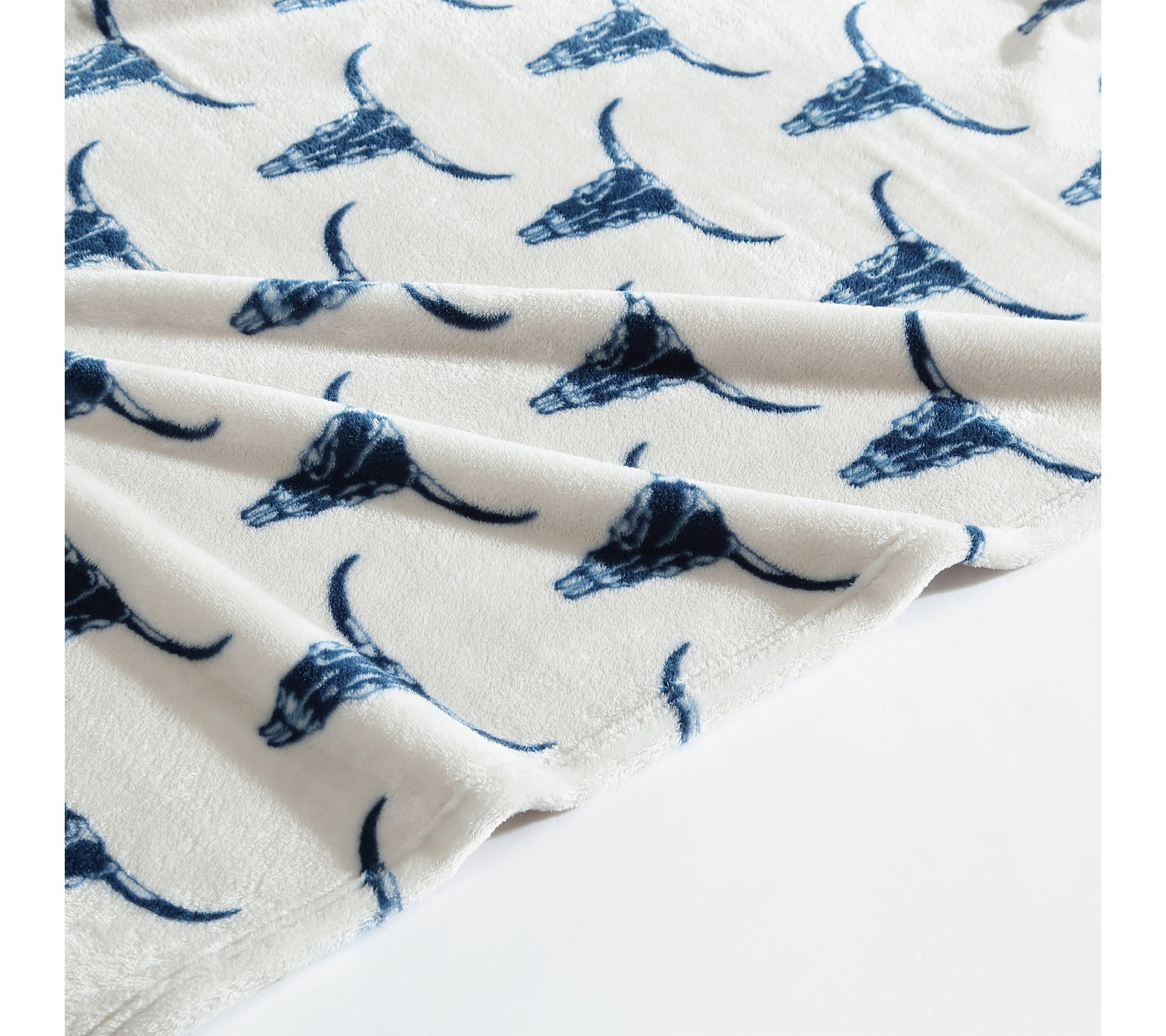 Transform your living space or cozy up on the couch with this ultra plush fleece throw, designed with authentic western-inspired steer head motifs in rich blue for a striking look. The lightweight, soft feel is ideal for quiet evenings, travel, or adding rustic ranch–inspired charm to your bedding ensemble. From Wrangler.