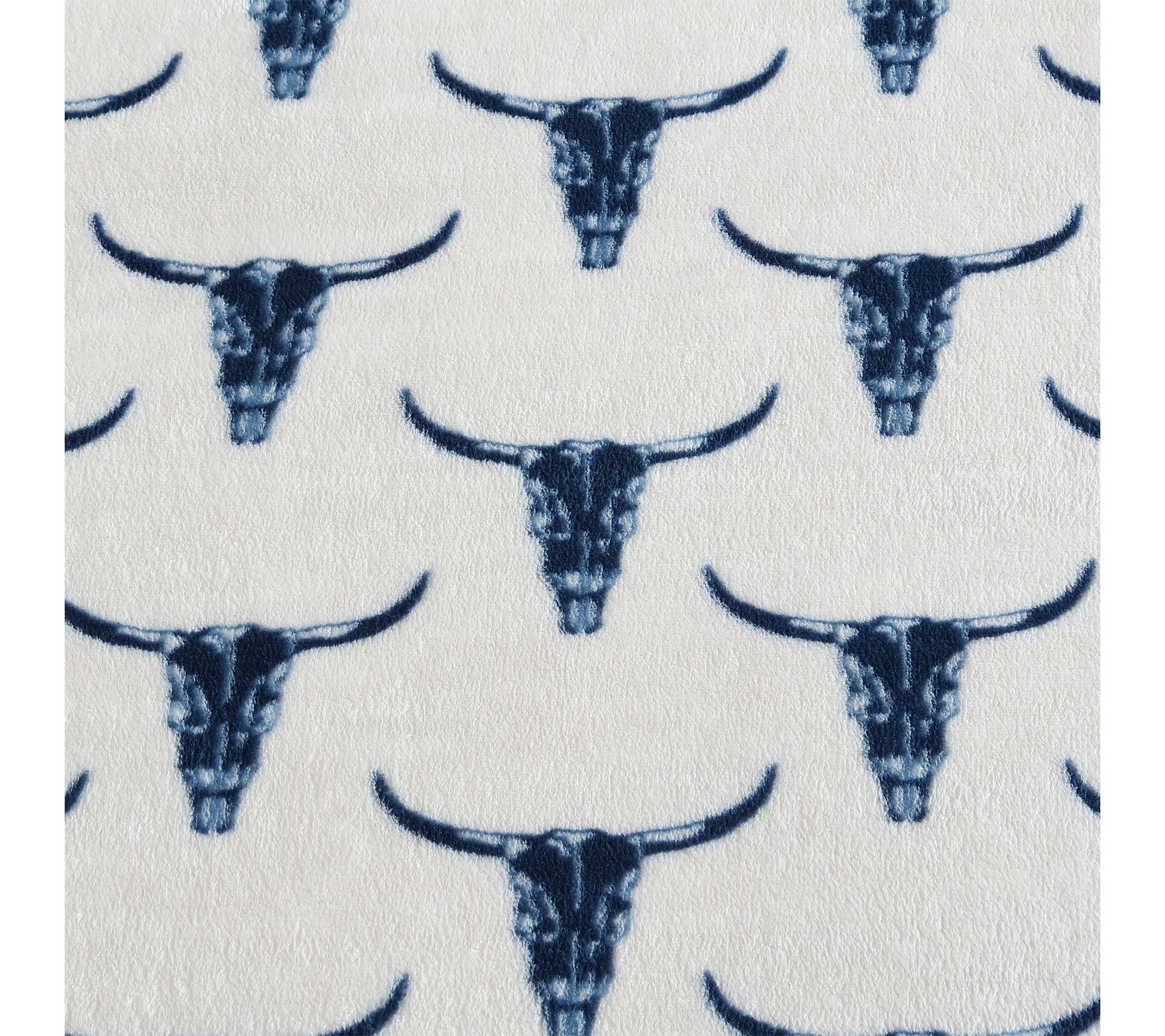 • Western-inspired design featuring repeating steer head motifs in dark blue