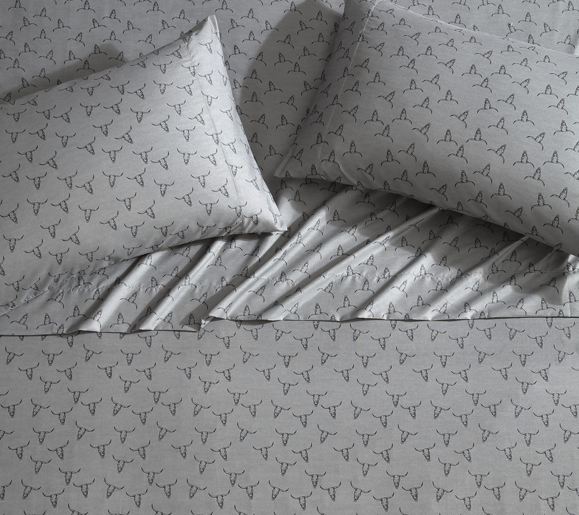 Wrangler Steer Skulls Grey TwinXL Microfiber Sheet Set