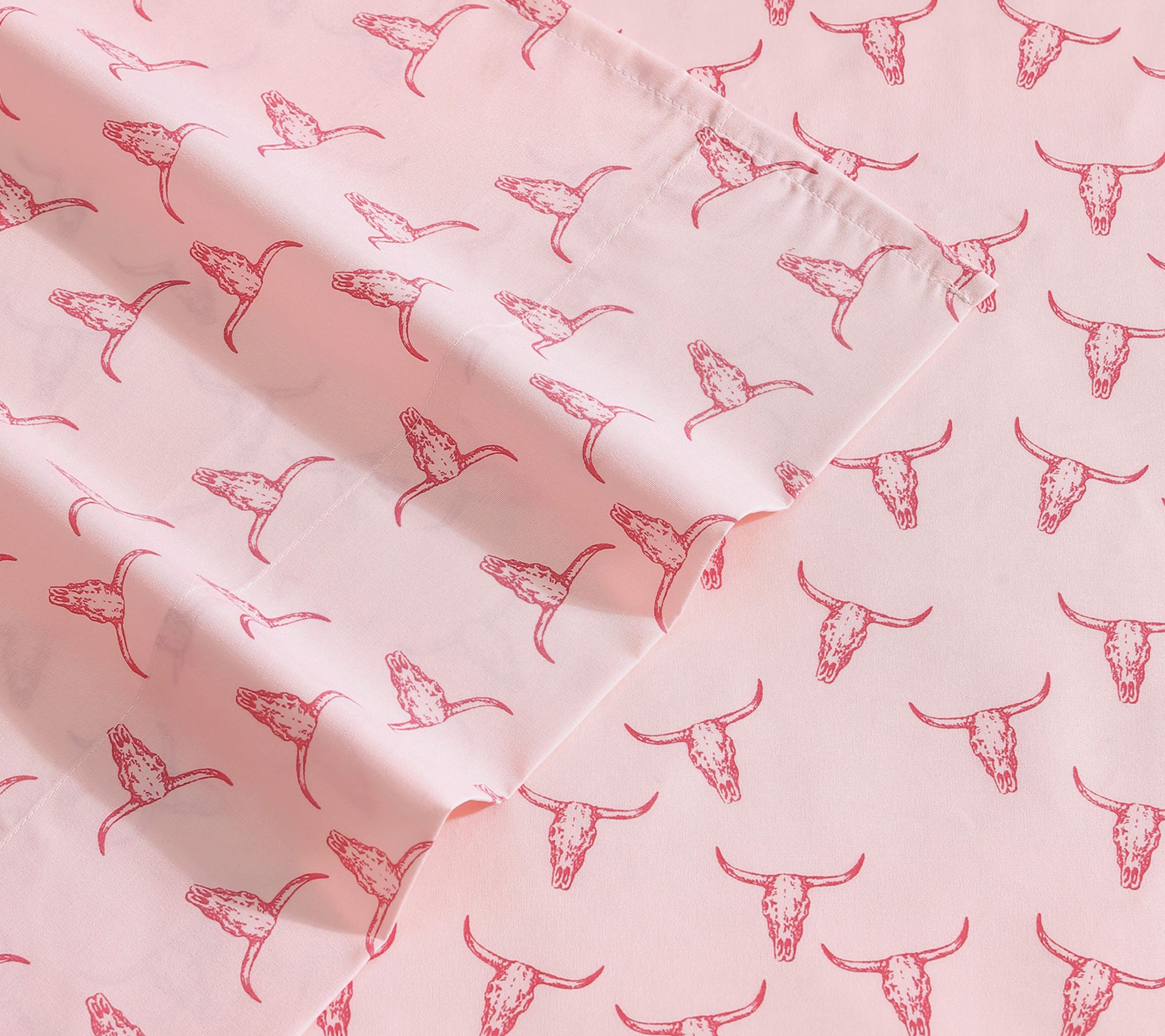 Wrangler Steer Skulls Pink King Microfiber Sheet Set