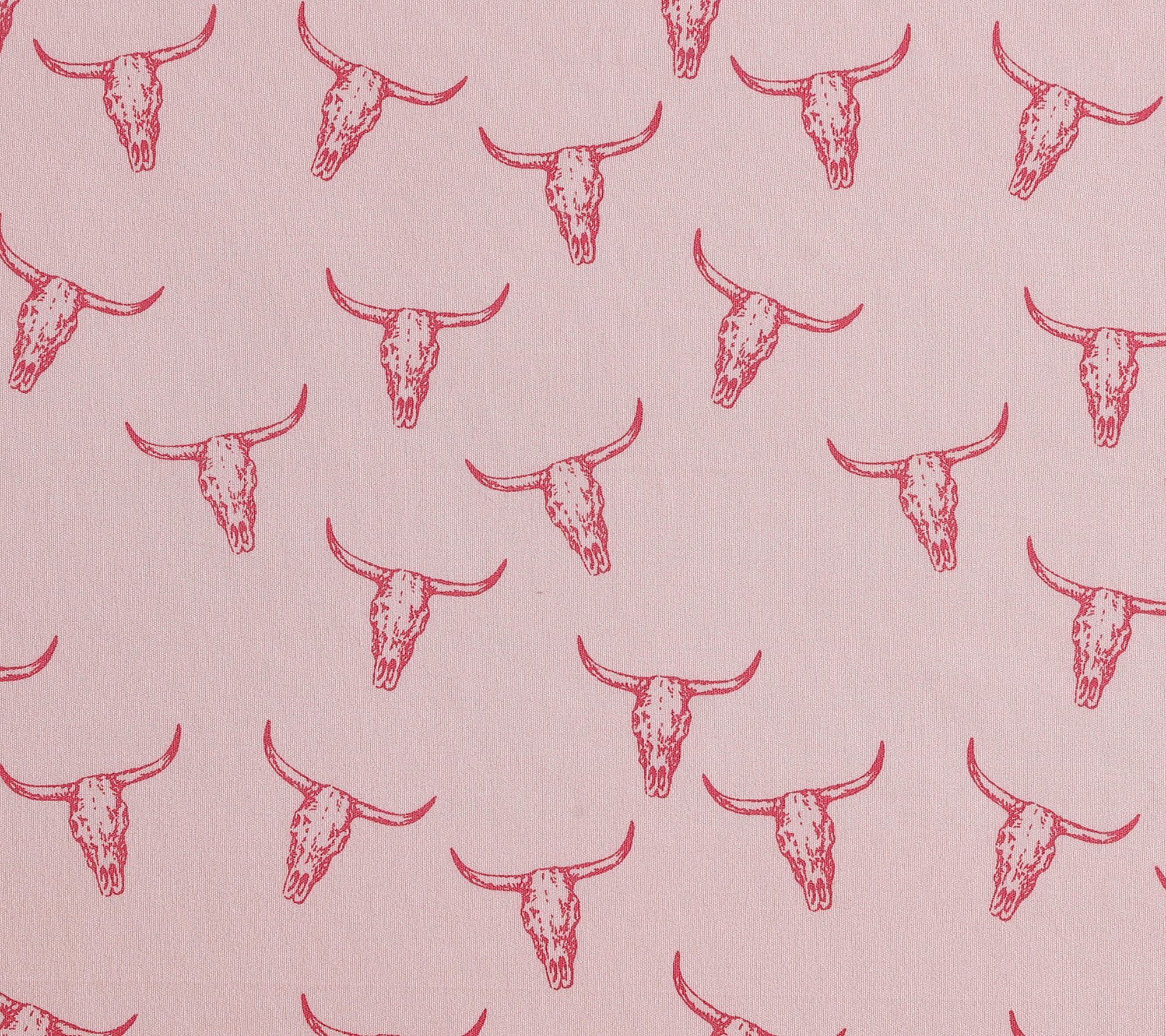 • Southwestern steer skull motif in vibrant pink adds western flair