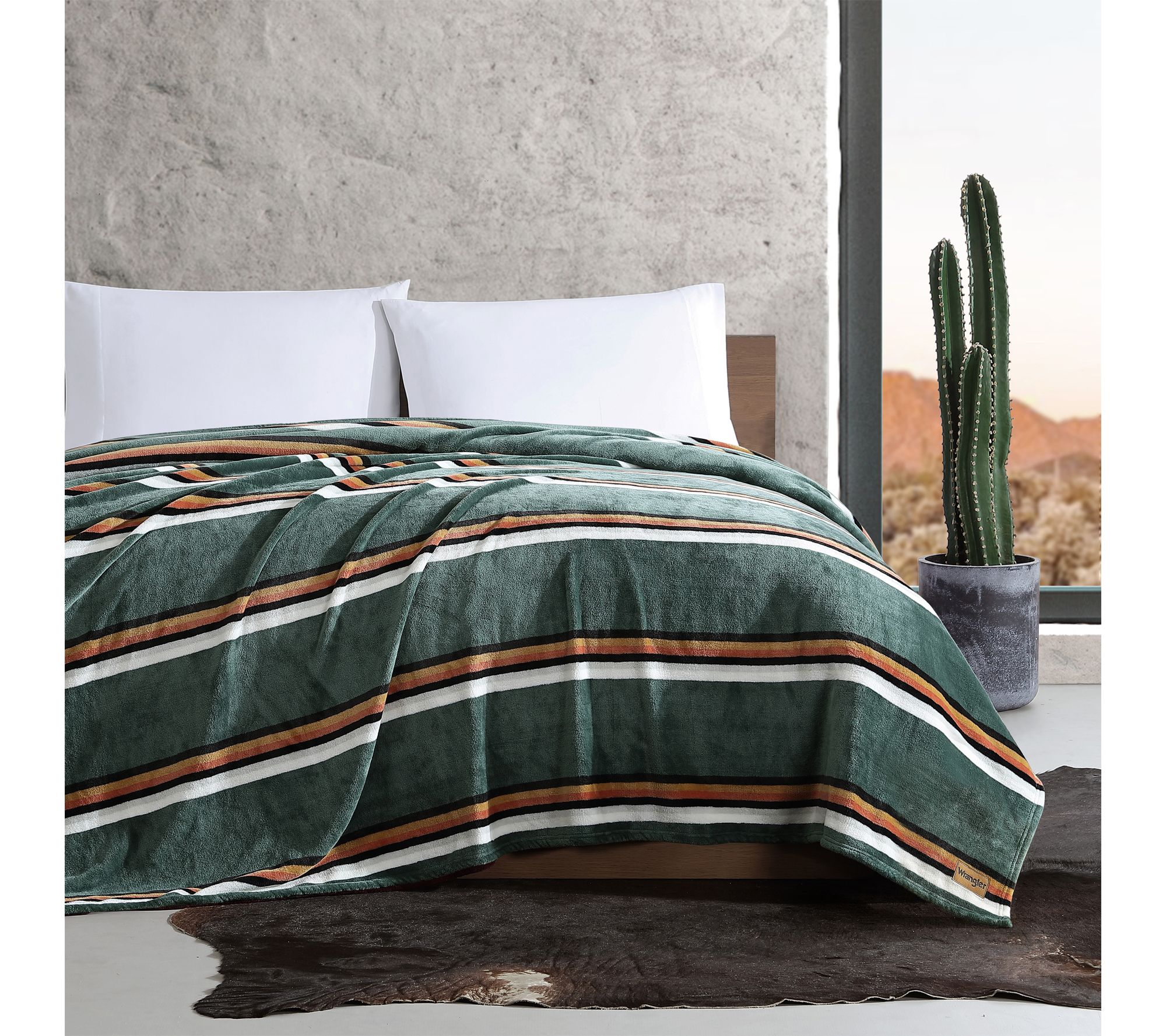 Bring cozy warmth and western charm to your space with this plush-fleece King blanket, featuring a classic stripe pattern and the iconic Wrangler logo patch for a stylish finishing touch. Whether tossed onto your bed for chilly nights or layered with your favorite Wrangler bedding, its ultra-soft, premium polyester design and tailored self-hem detailing make it an inviting addition. From Wrangler.