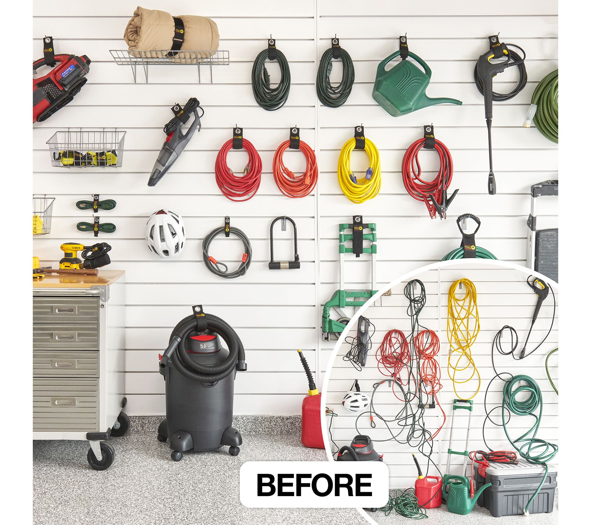 Getting your clutter under control is a cinch with this set of heavy-duty multi-purpose straps. From your office space to the junk drawer, the basement to the backyard, these organizational wonders keep chaos under control, so it's easier than ever to wrangle unruly wires, hoses, rope, and so much more! The Clip n' Carry strap works wonders when you're on the move. From Wrap-It Storage.