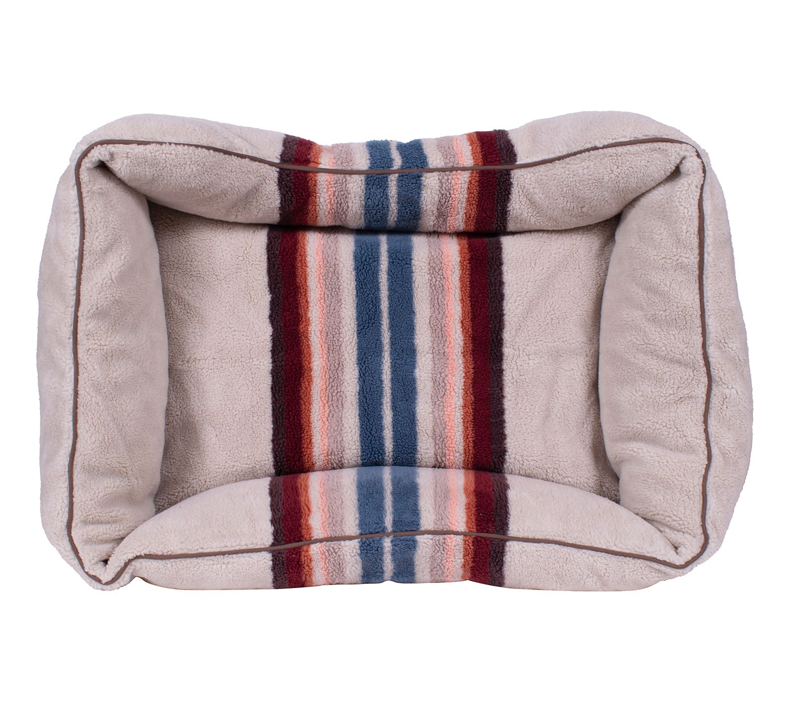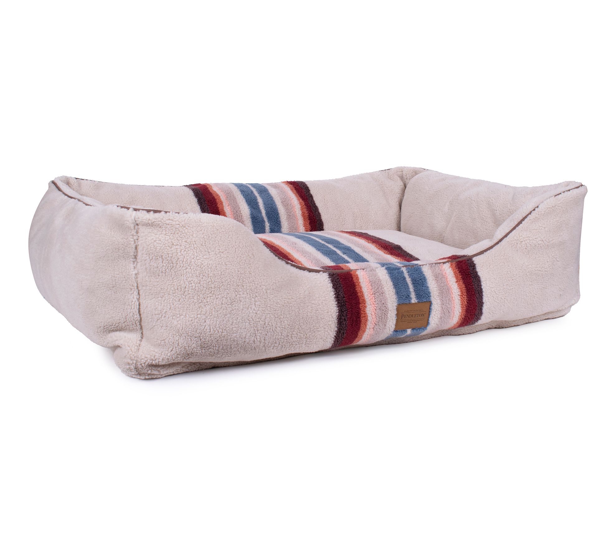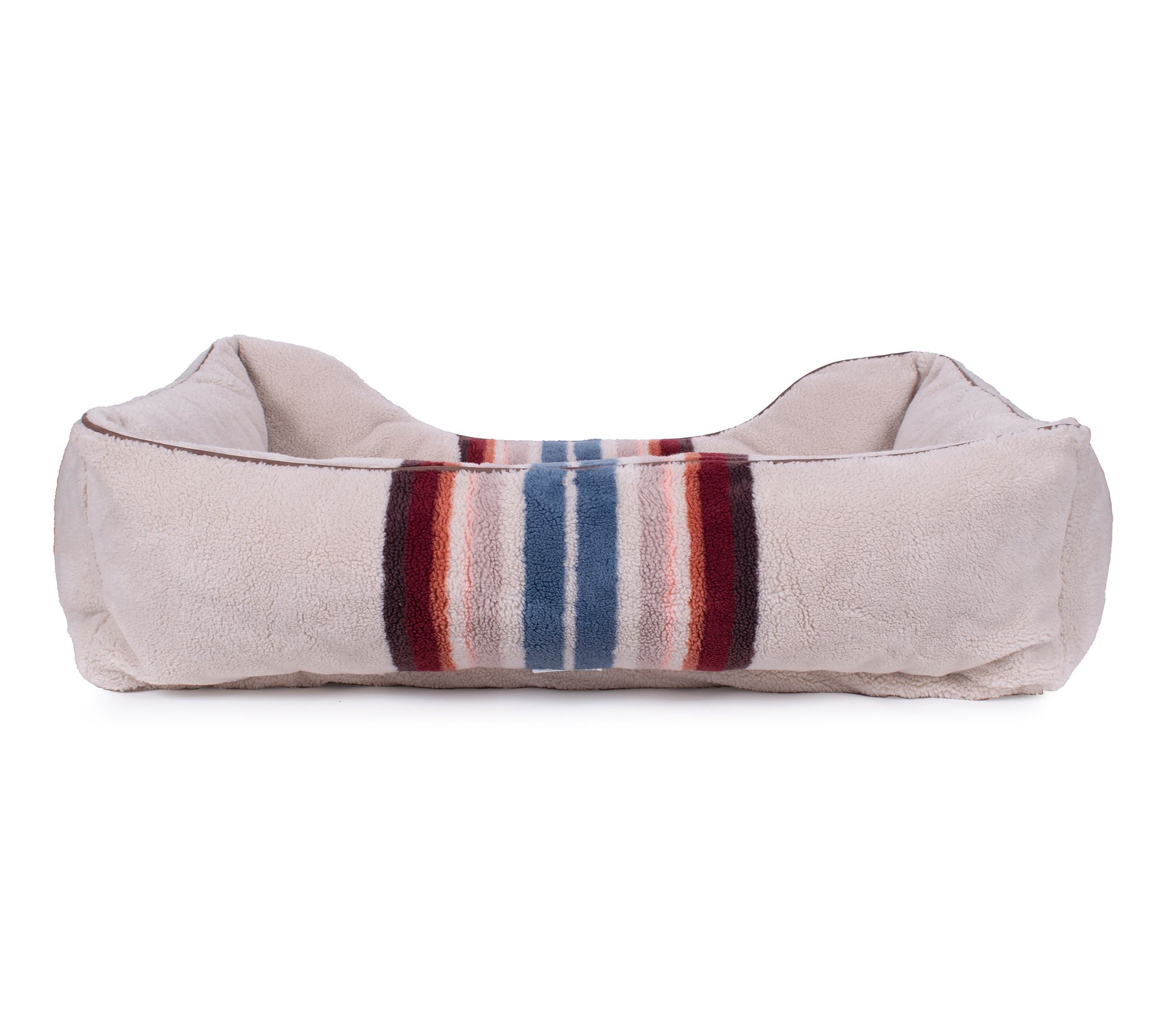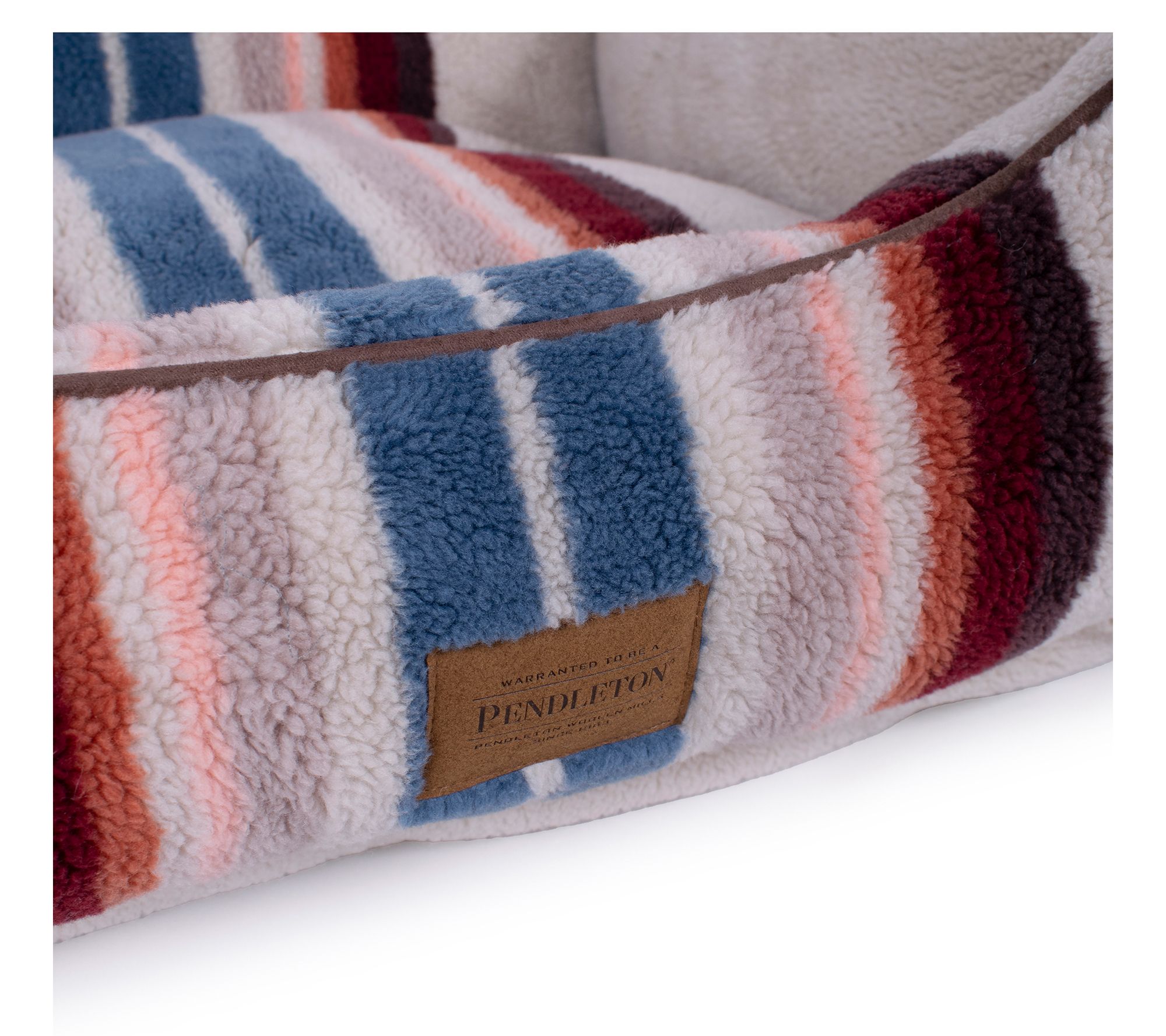 Bring comfort and style to your furry friend's relaxation time with the Pendleton x-large berber kuddler. Featuring vibrant stripes inspired by the serape patterns of Saltillo, Mexico, this pet bed boasts a soft jacquard knitted berber fabric and a high-loft memory fiber polyester fill. From Pendleton.