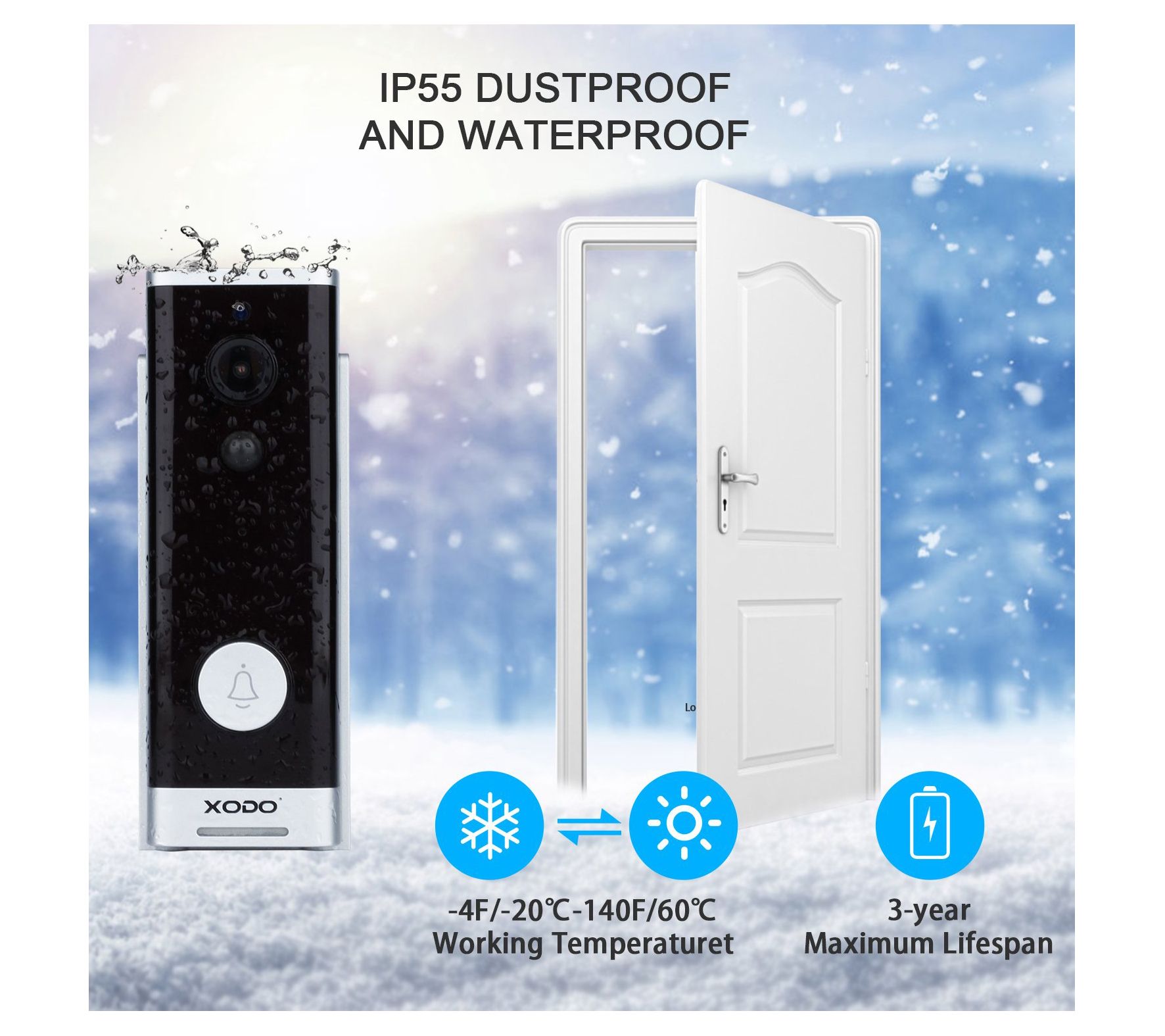 Connect this video doorbell to your phone via the Xodo Smart app and see exactly what's going on at your front door, even when you aren't there. Share usage with up to six users and let the safety-first specs like night vision and motion detection provide you with peace of mind. From XODO.
