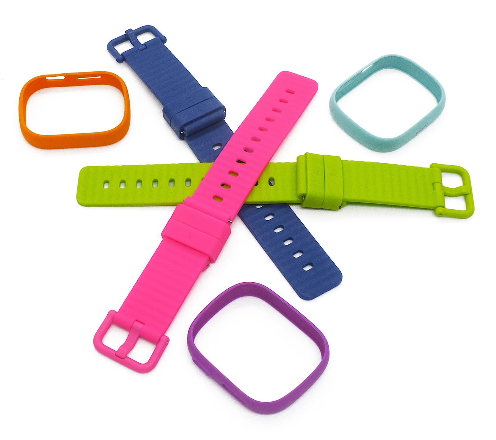 • Includes three X6Play watch straps in lime, dark blue, and pink; and three frames in turquoise, orange, and purple