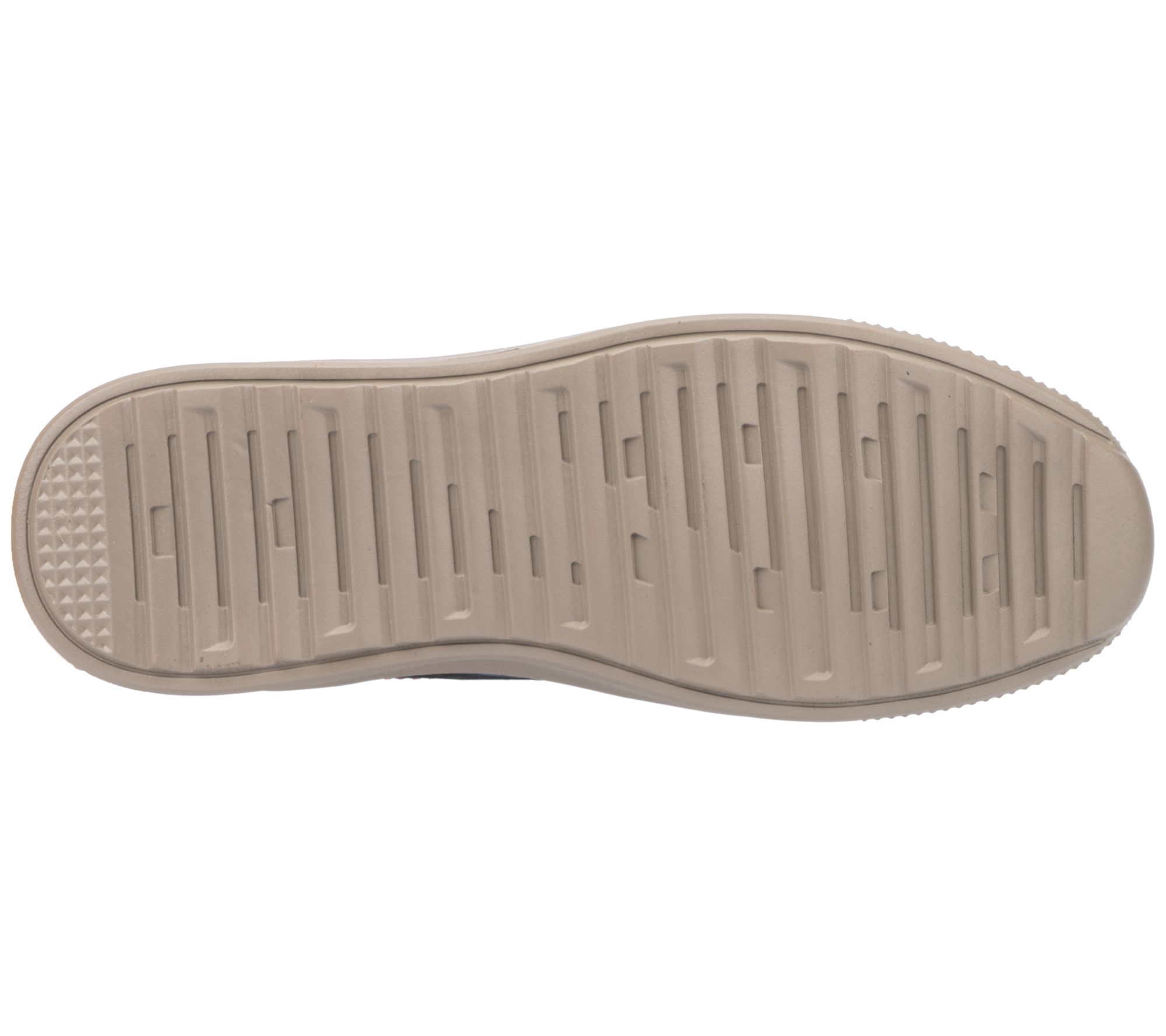 Slip-on design, perforations on the side panel, rounded toe