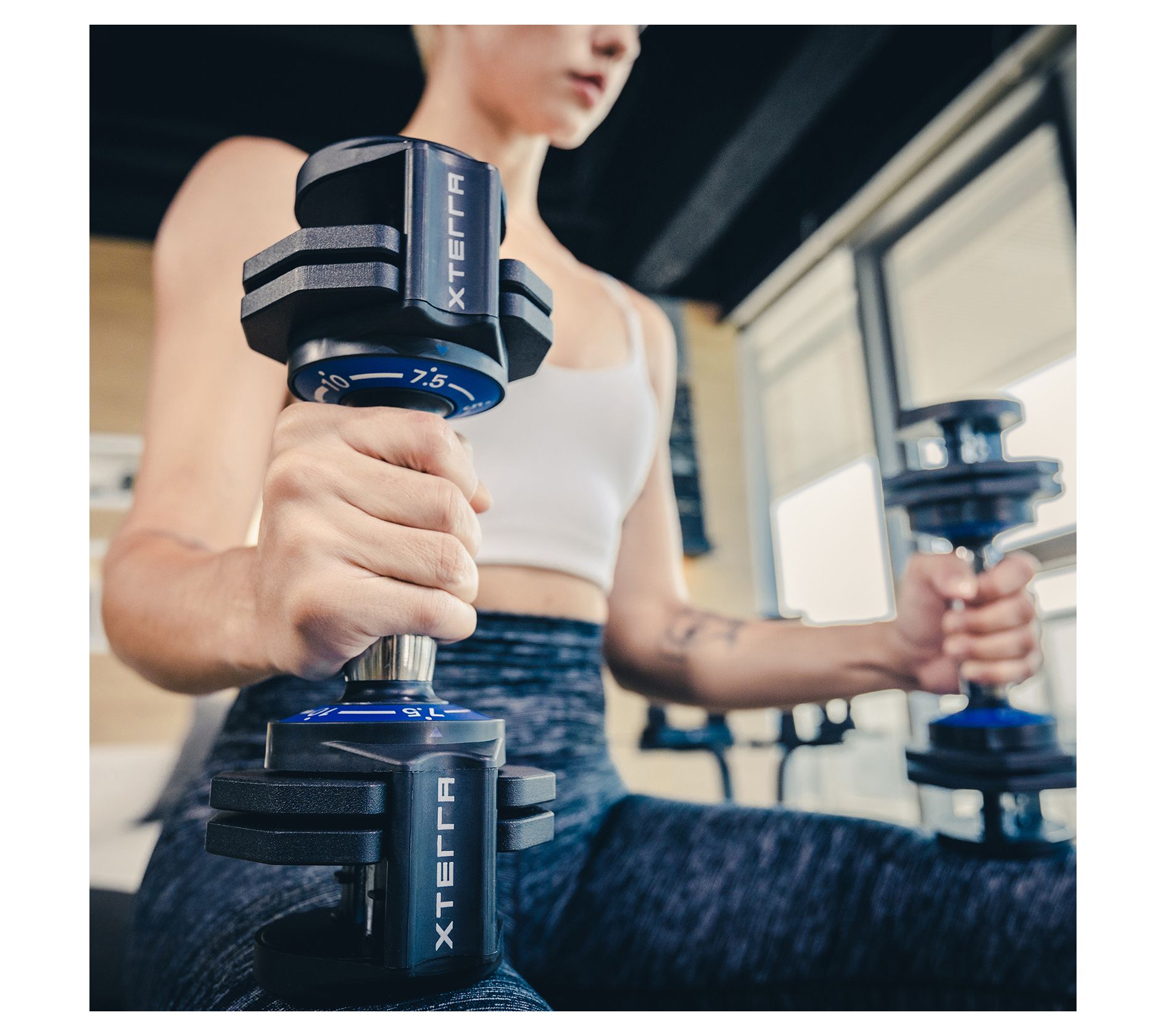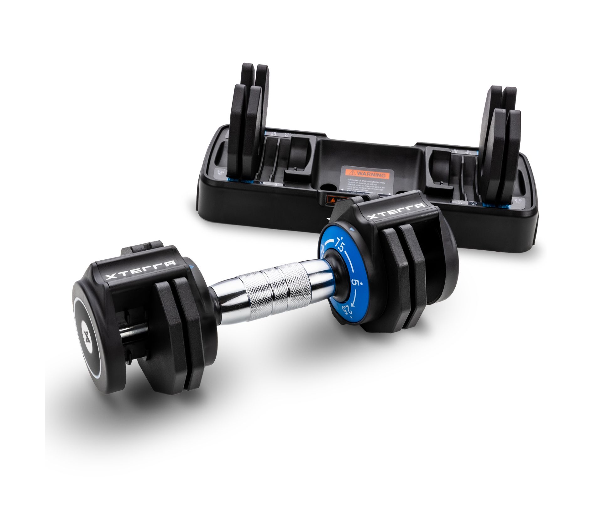 Experience the ultimate in versatility and convenience with the ADB12.5PR adjustable dumbbells, designed to simplify your fitness routine. Crafted with precision and durability in mind, these dumbbells feature solid steel plates, a hexagonal shape to prevent rolling, and knurled, contoured chromed steel handles for a comfortable grip. With a weight range from 2.5 lbs to 12.5 lbs, they cater to all fitness levels without the clutter of multiple dumbbells. The easy-carry trays make them perfect for on-the-go workouts, while their compact design allows for effortless storage and portability. From XTERRA Fitness.
