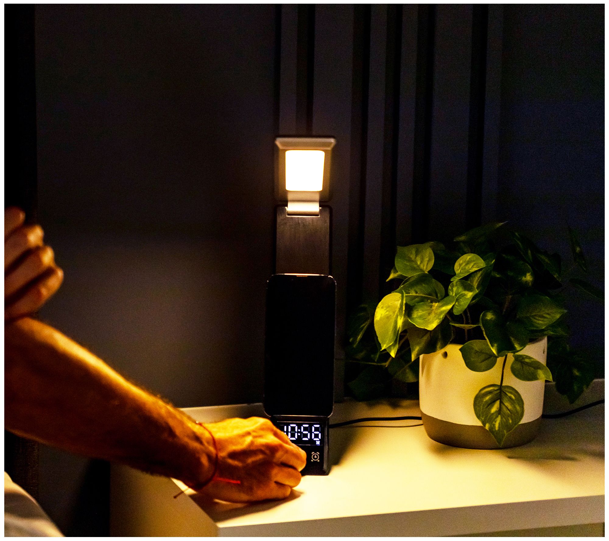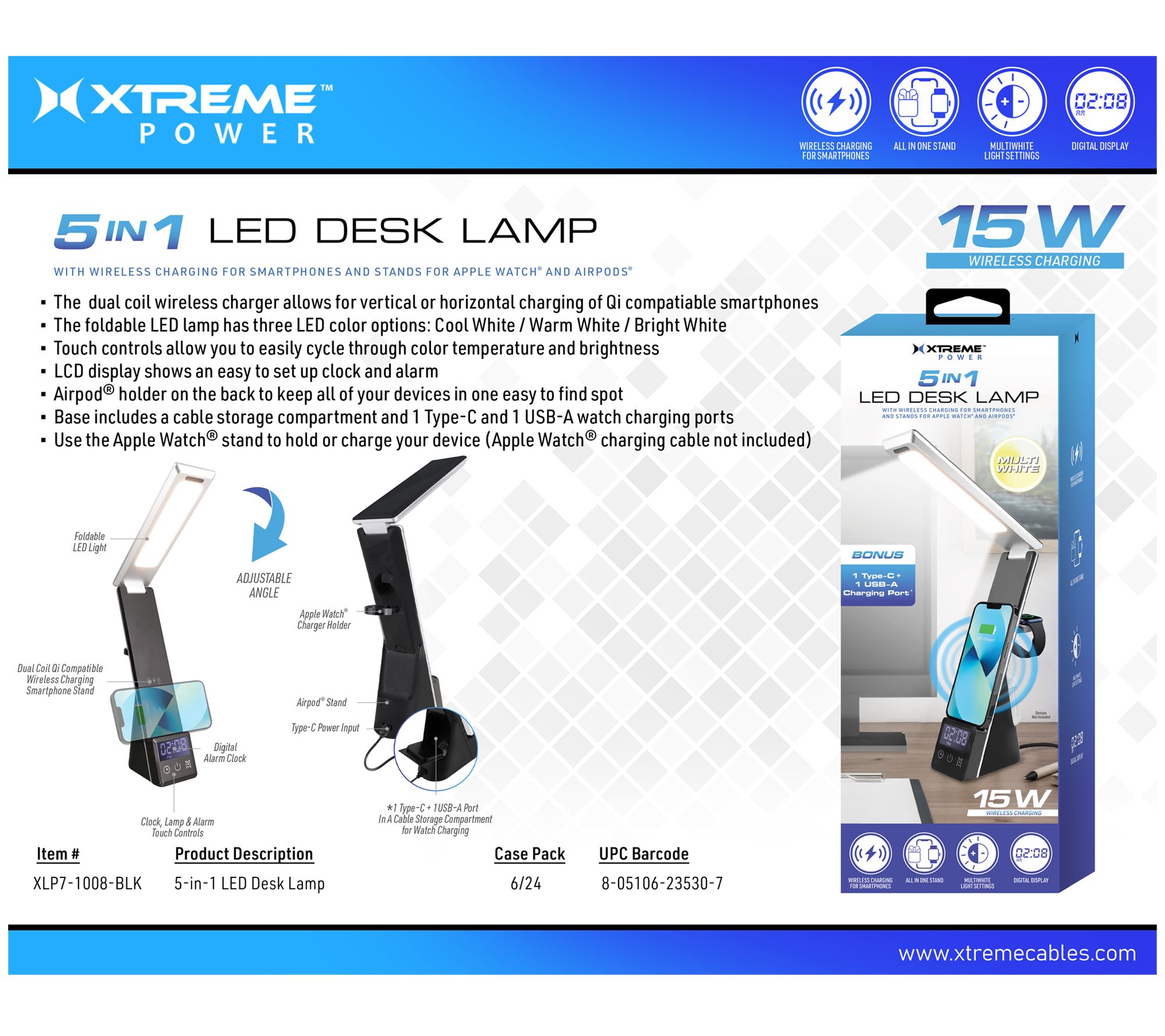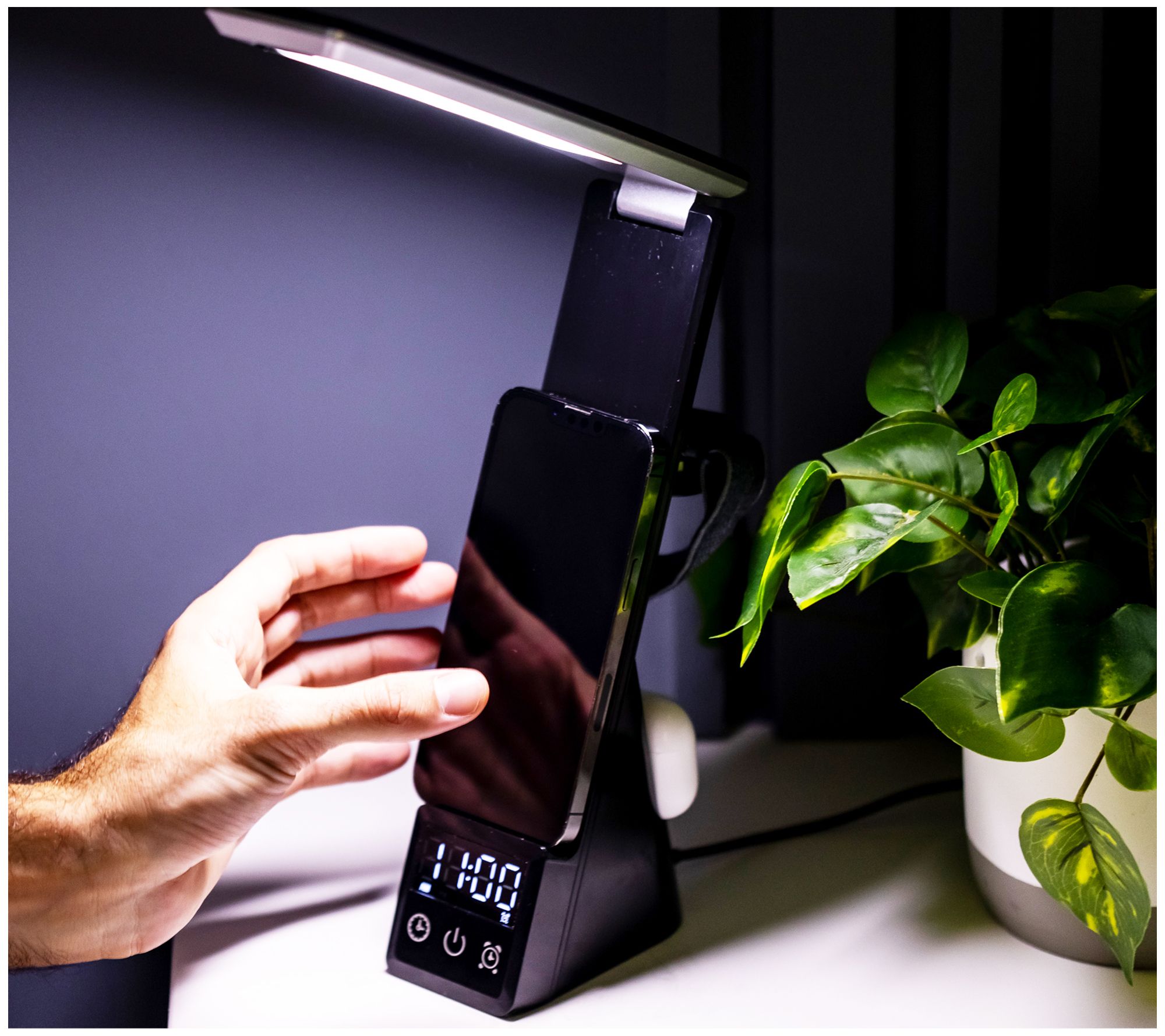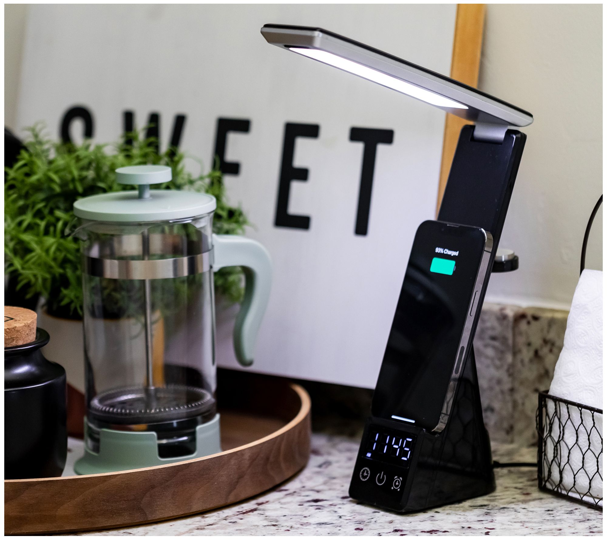 This five-in-one desk lamp lets you charge your wireless devices, with designated spots for your smart phone, Apple Watch, and Air Pods. It also functions as a digital alarm clock with an LCD display. From Xtreme.