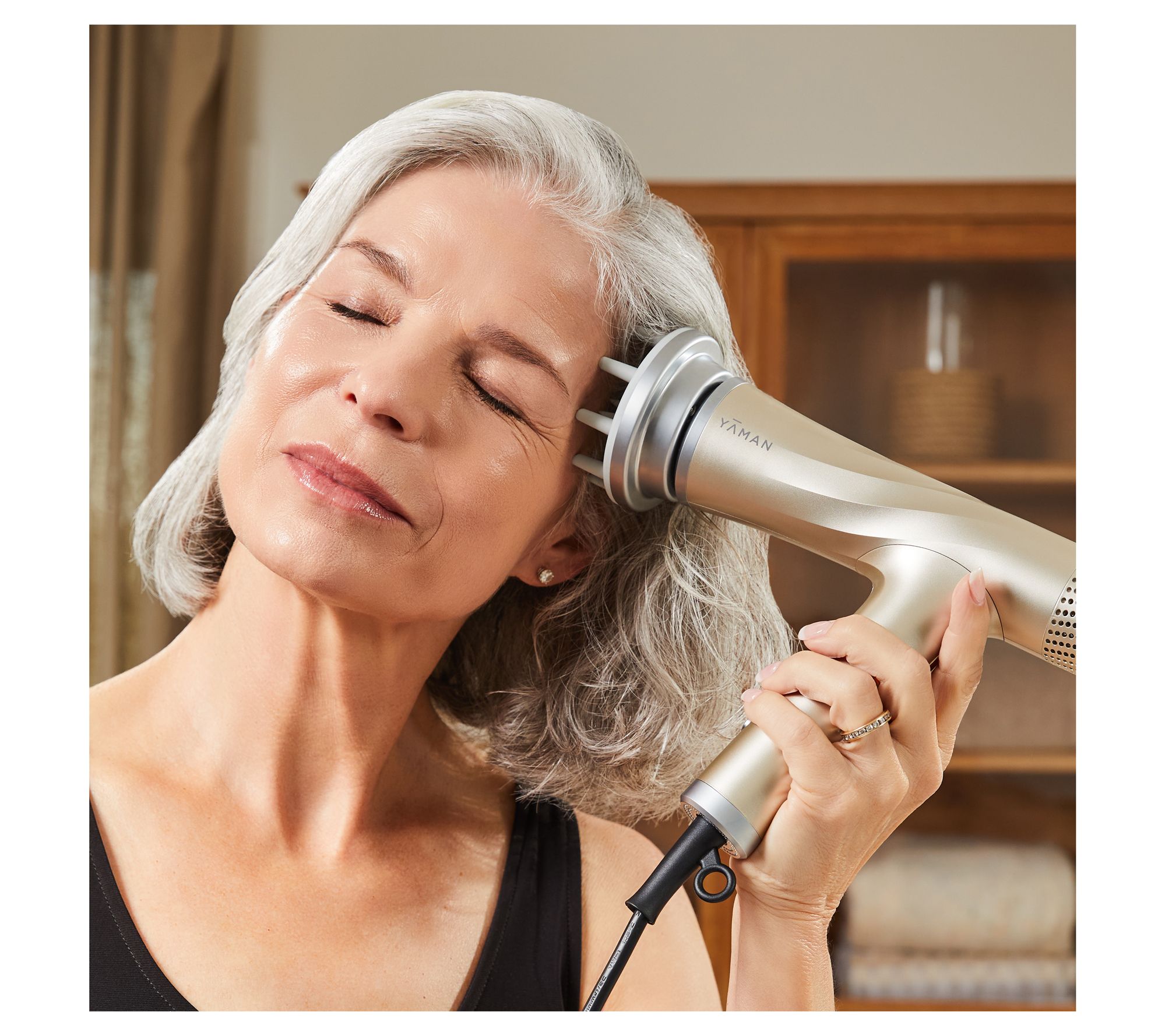 A blow-dryer with a difference, the Spa Styler Blow Dry + Scalp Massage quickly and easily dries your hair for the look of body, bounce, and shine, while at the same time offering a soothing and stimulating option with the Scalp Lift massage attachment. The custom-engineered motor accelerates dry time with a speed of 103,000 rpm that is powerful yet quiet. Red Light and Infrared technology help stimulate both scalp and hair; this helps the strands retain interior moisture by gently heating from inside and out. The Scalp Lift attachment delivers warm airflow plus 100 vibrations per second to relax and soften stiff scalp to help promote healthy hair. Ion Reset technology quickly eliminates static flyaways, helping reduce frizz for a smoother, salon-quality finish. It weighs less than a pound for easy and comfortable styling. Three speed settings, each with a different heat temperature plus a cool shot button, are perfect for all hair types and textures. From YA-MAN.