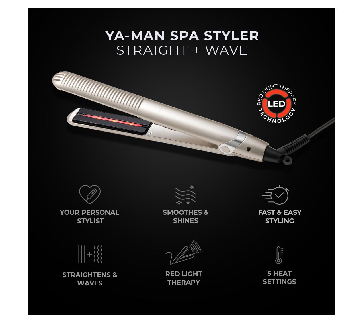 A flat iron with a difference, The Spa Styler delivers straight, glossy hair or soft, gentle waves, all while helping to preserve your strands. Your personal stylist, the Spa Styler's spring plates create the optimal compression to avoid damage on hair cuticles for a smoother, professional finish. Moisture Pulse technology emits millions of negative ions to seal-in moisture and help reduce static frizz for smoother, shinier tresses. A triple heater and tourmaline-coated plates help ensure even, efficient heat distribution for beautiful results in a single pass. Rounded plates and a curved barrel allow for sleek, straight locks or easily created waves. Red Light + Infrared technology helps strands retain interior moisture by gently heating from inside and out. From YA-MAN.