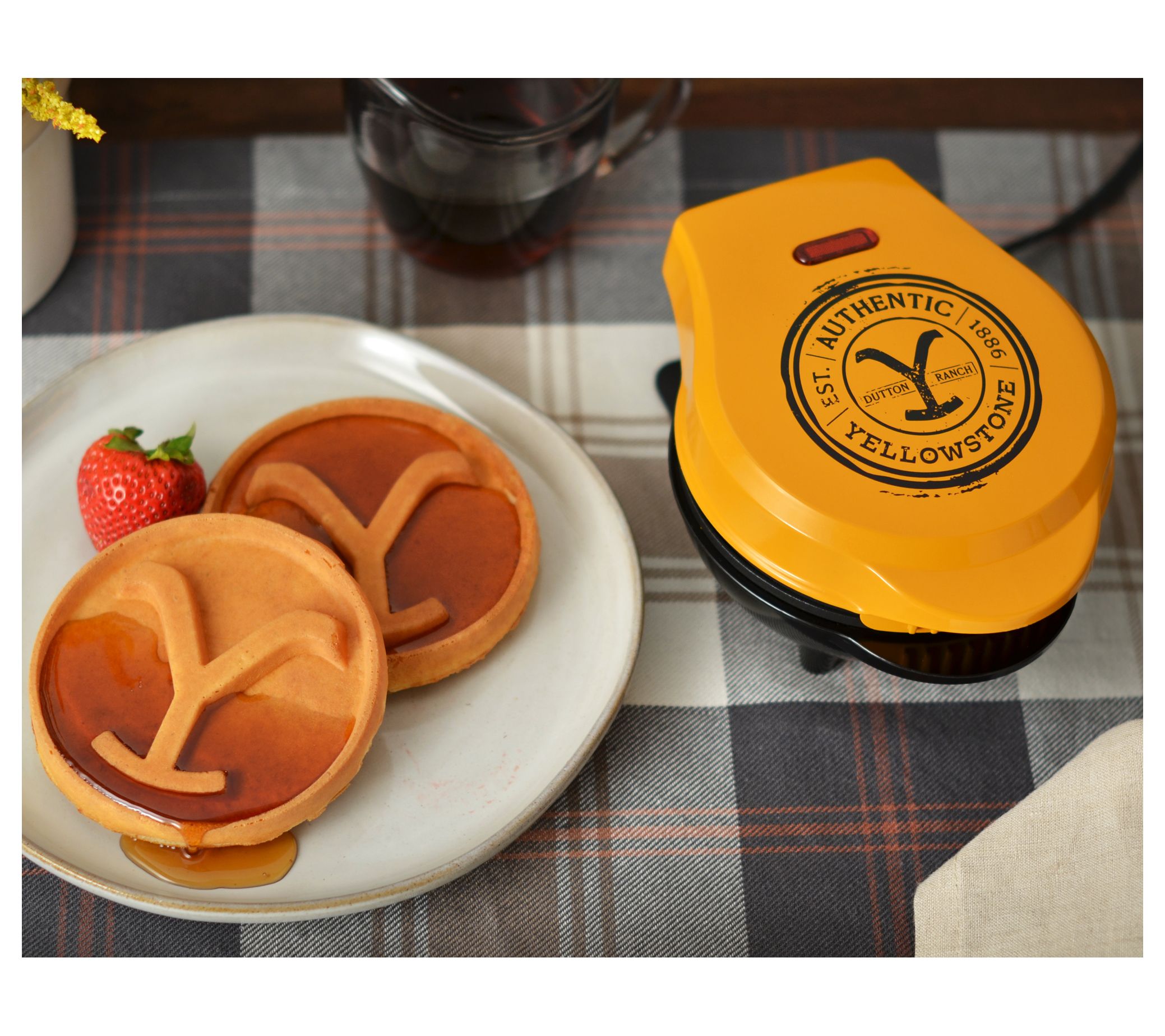 Start your day with the Yellowstone mini waffle maker, featuring the iconic Yellowstone ranch logo on each delicious waffle. This compact appliance brings a touch of the Duttons' world to your breakfast table, complete with non-stick coating for easy cleaning and automatic temperature control. From Yellowstone.