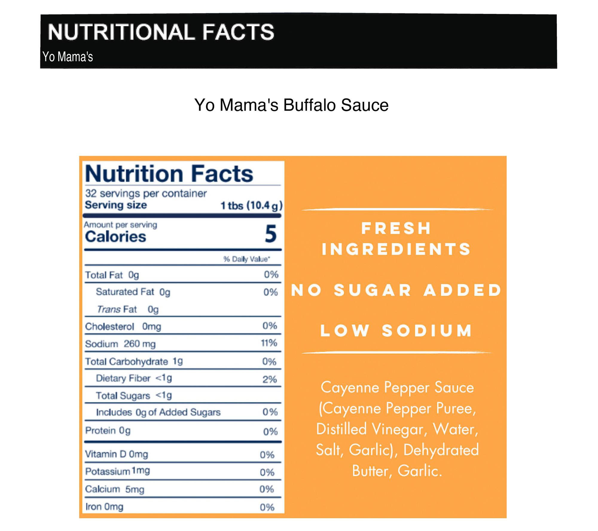• Includes two 13.75-oz bottles of Yo Mama's Original Buffalo Sauce