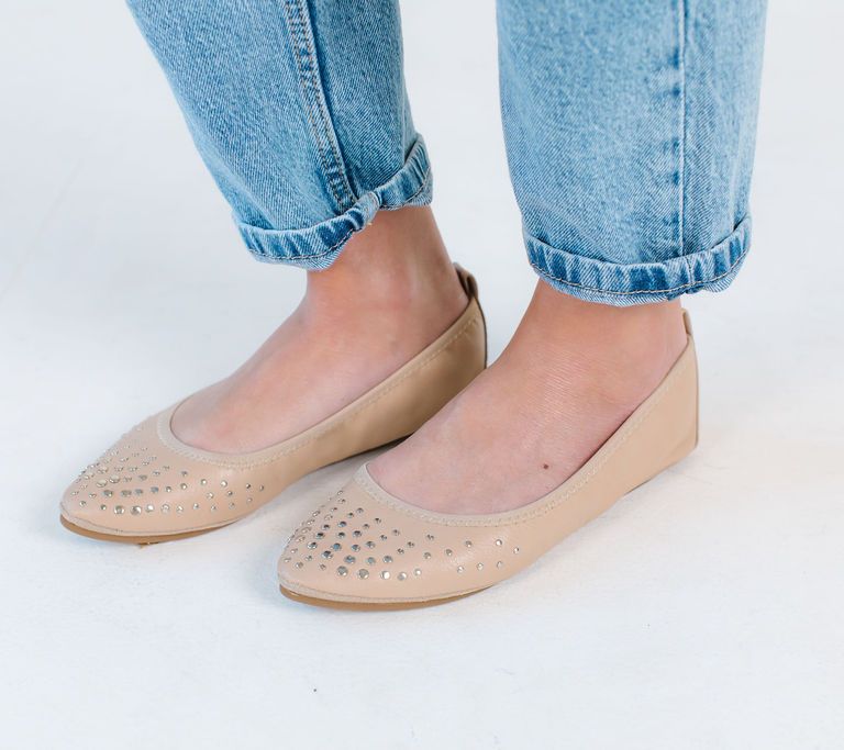 • Slip-on style, foldable, stud detailing, padded insole, pointed toe