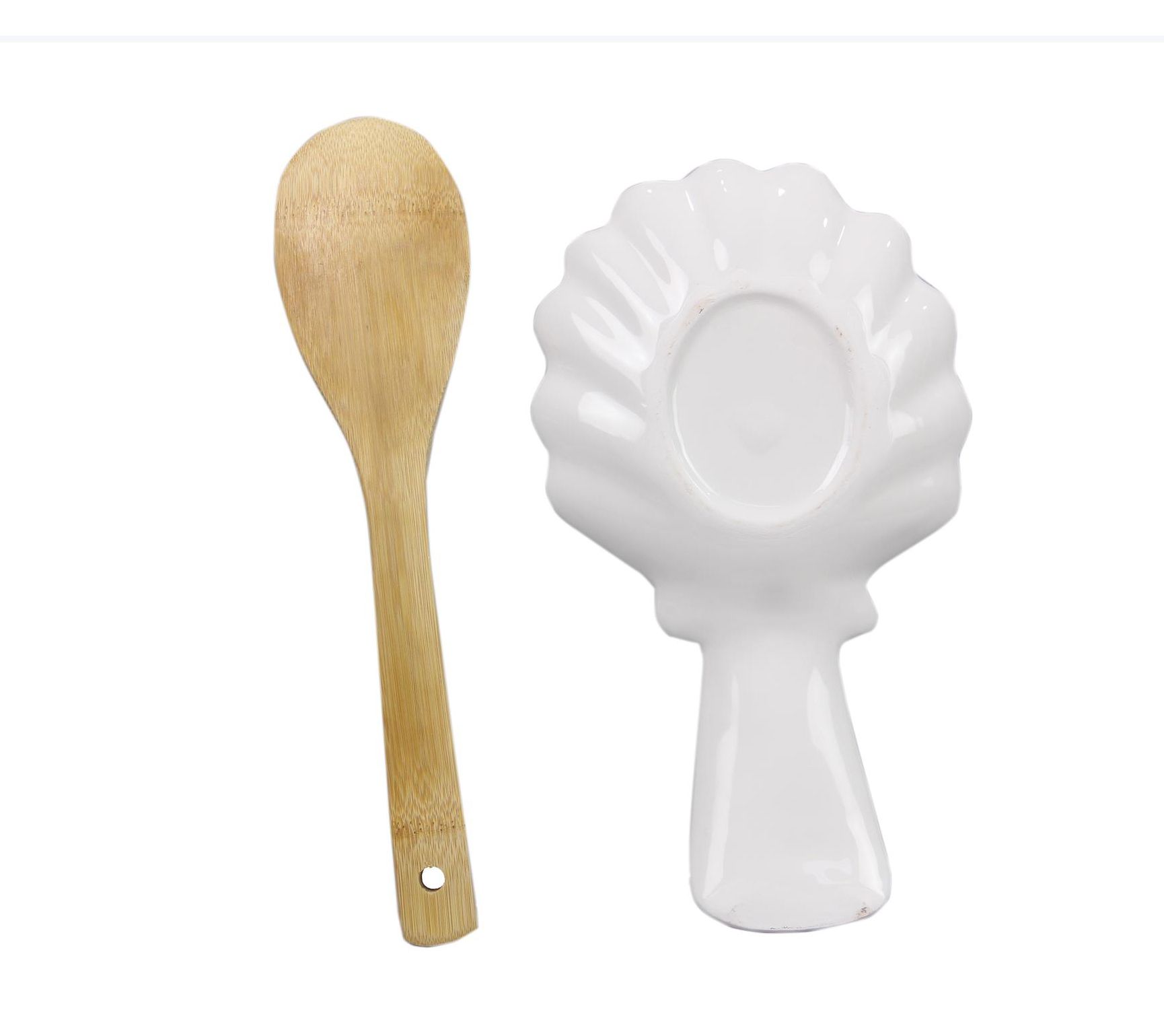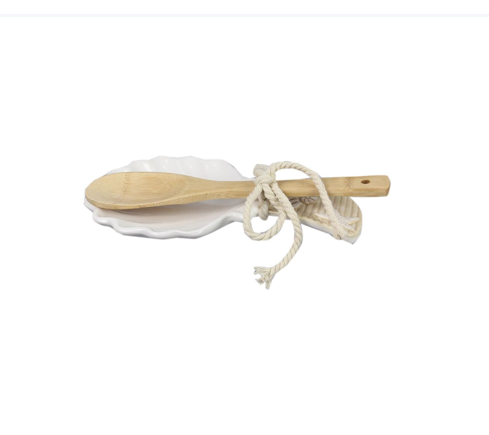 Young's 2-Piece Ceramic Shell Design Spoon Rest with Spoon