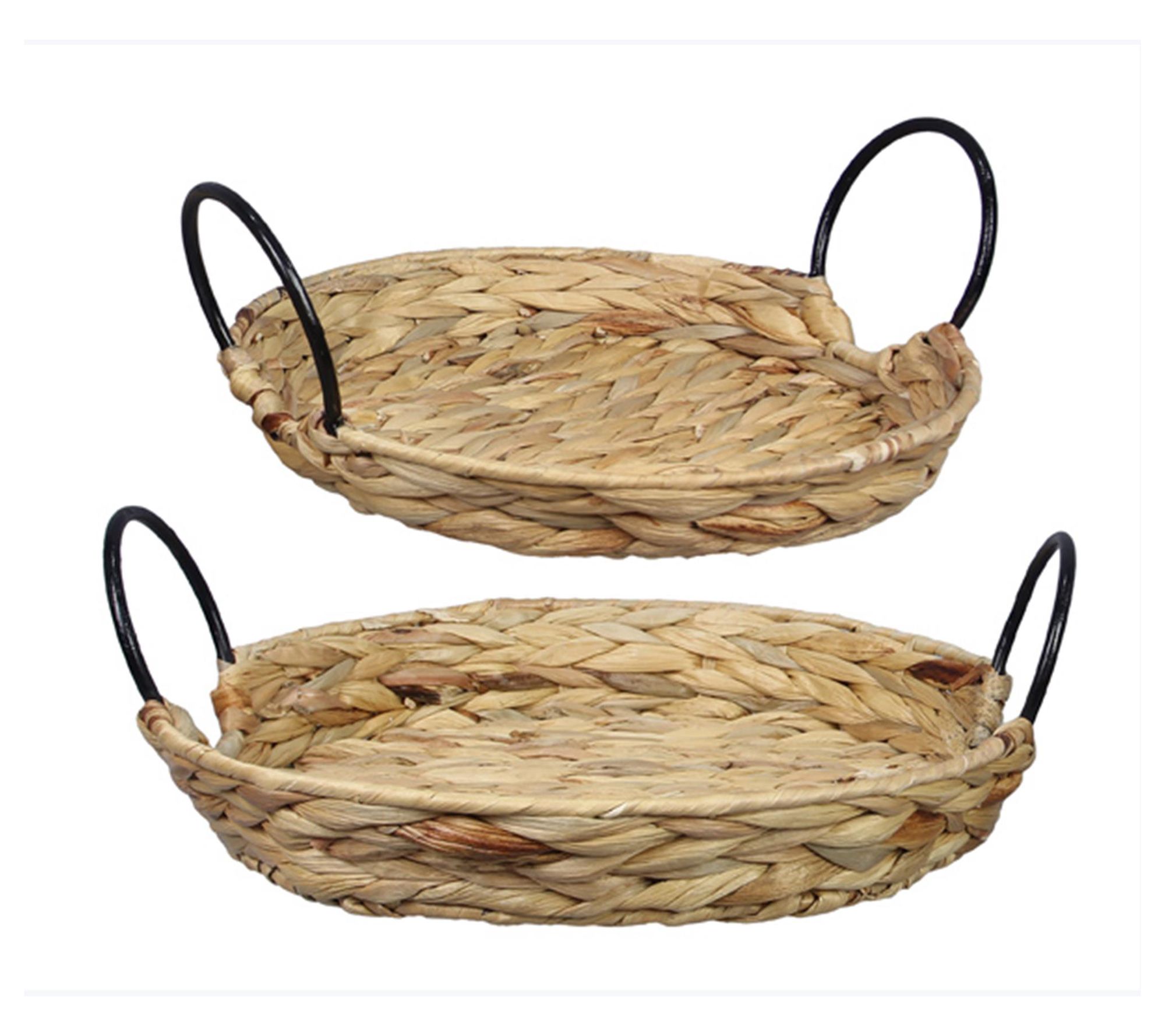 Hold keys, remote controls, and more in earthy style when you have this set of two basket trays, each featuring a beautiful woven design accented by oversized metal handles. From Young's.