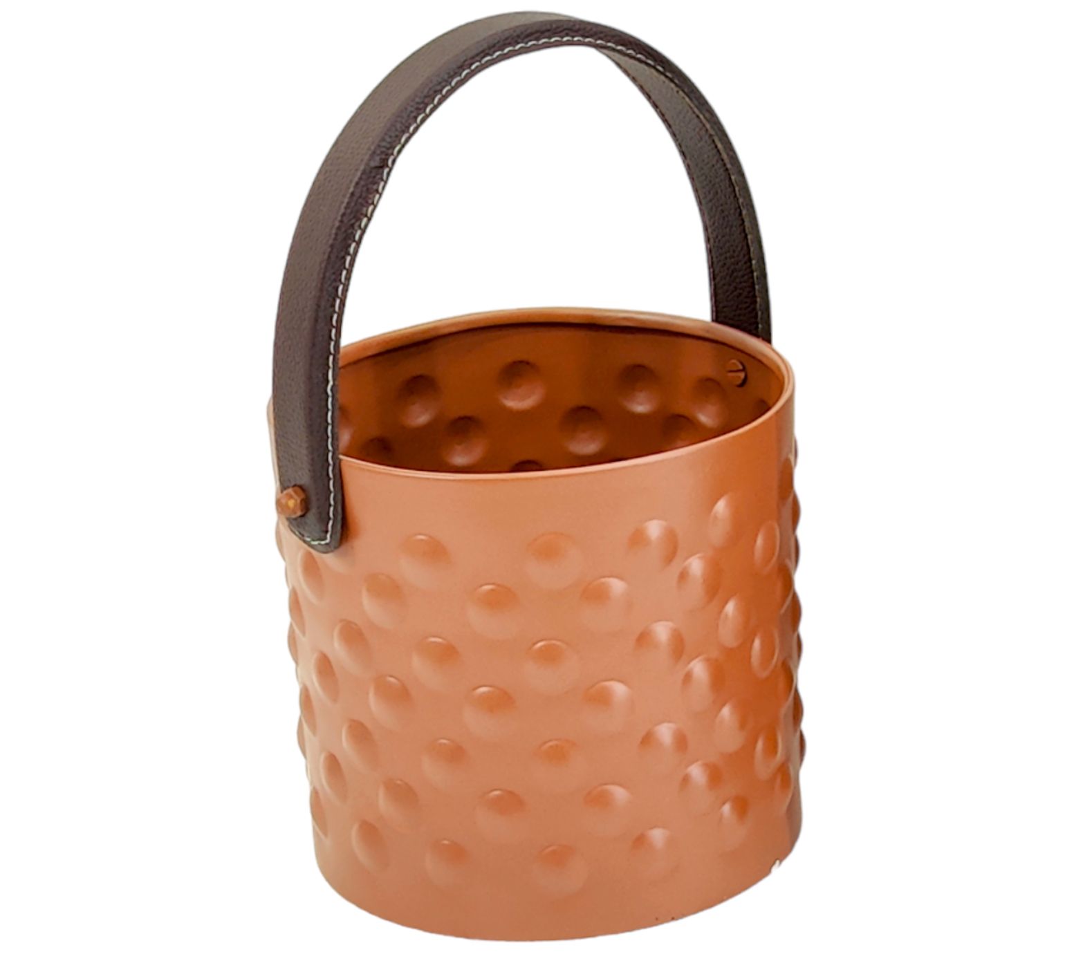 Transform your garden or indoor space with this set of two planters that bring a touch of rustic elegance with their rich terra cotta hue and unique hobnail texture. Designed with brown, stitched handles for easy relocation and drainage holes to support plant health, these metal planters are a perfect blend of functionality and style. From Youngs.