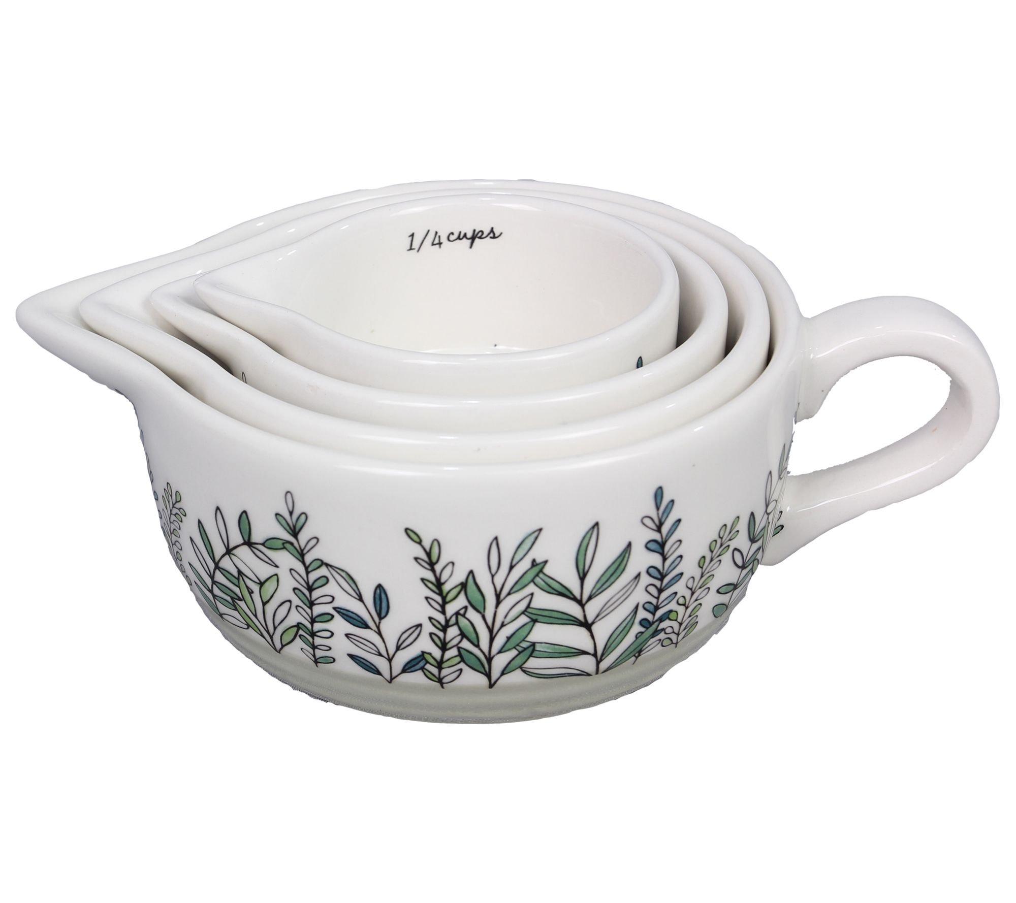 Young's Inc. 4-Piece Quiet Cottage Ceramic Measuring-Cup Set