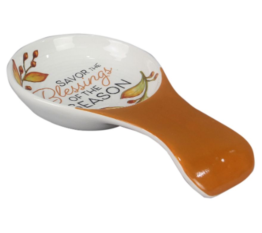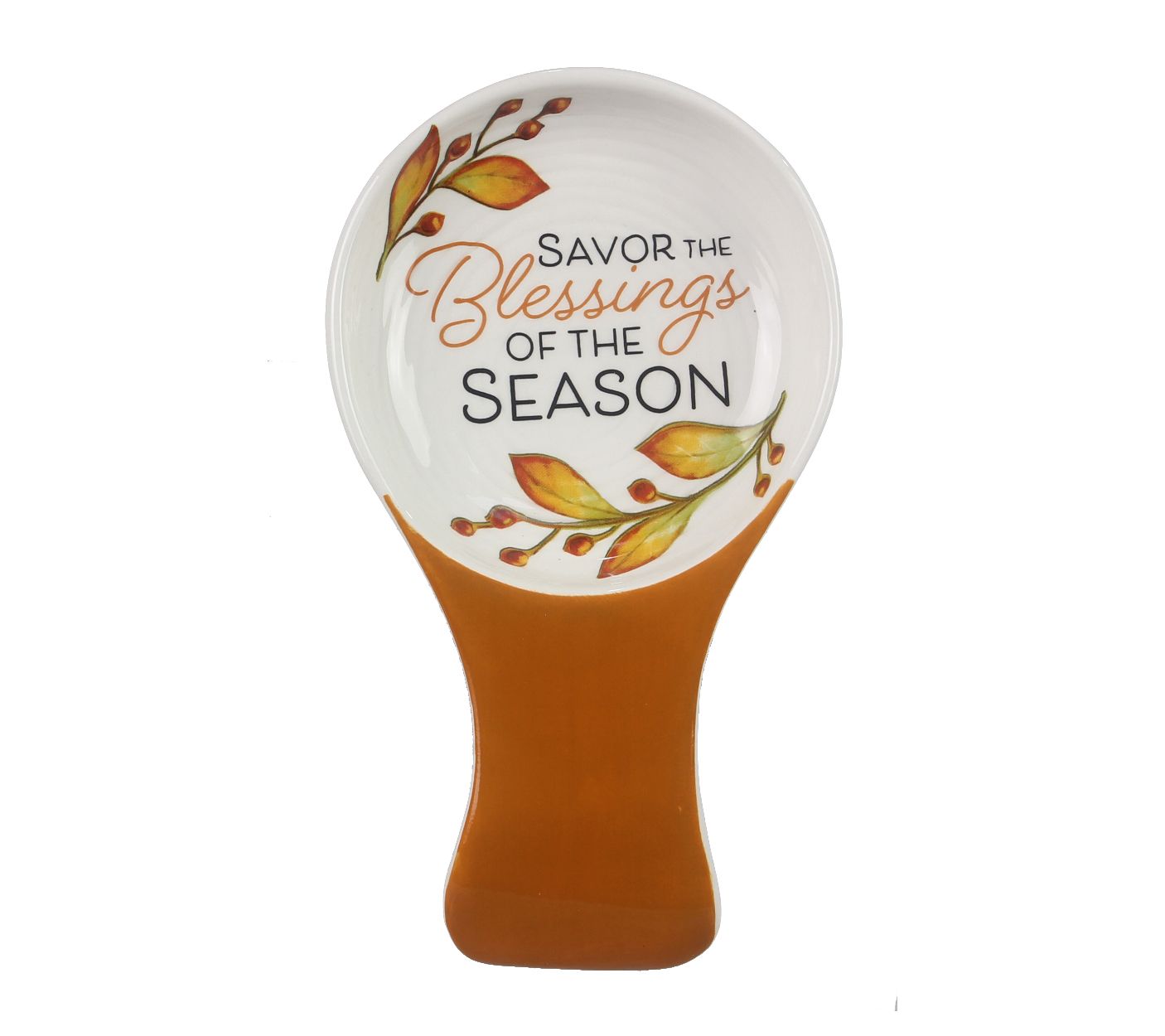 Help keep spills, splatters, and drips to a minimum with this Fall Blessings spoon rest. From Young's, Inc.