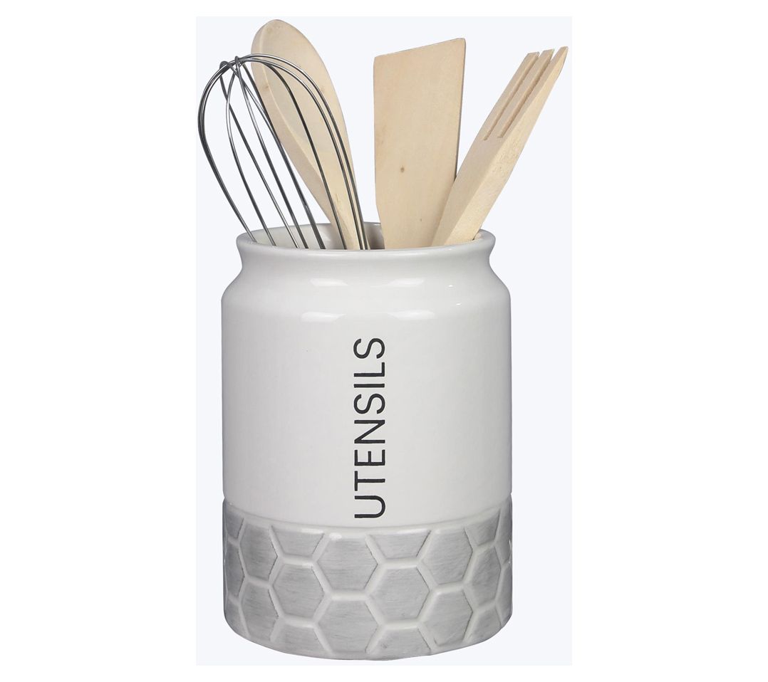 • Includes ceramic tool holder with whisk, spoon, fork, and knife