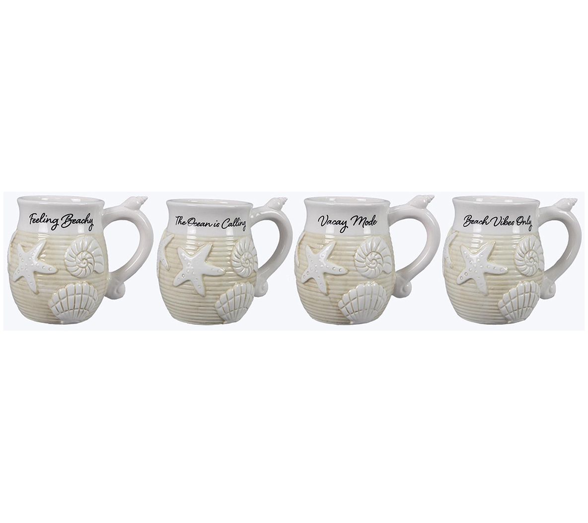 Young's Inc. Set of 4 Beach Shell Ceramic Mugs