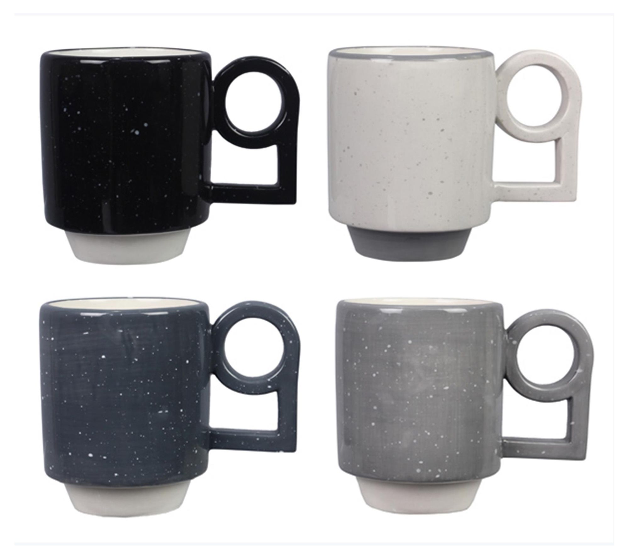 Whether you're enjoying a robust cup of coffee, creamy hot cocoa, or tangy herbal tea, sip in style when you have this set of four mugs, each with a speckled pattern and a fun geometric design. From Young's Inc.