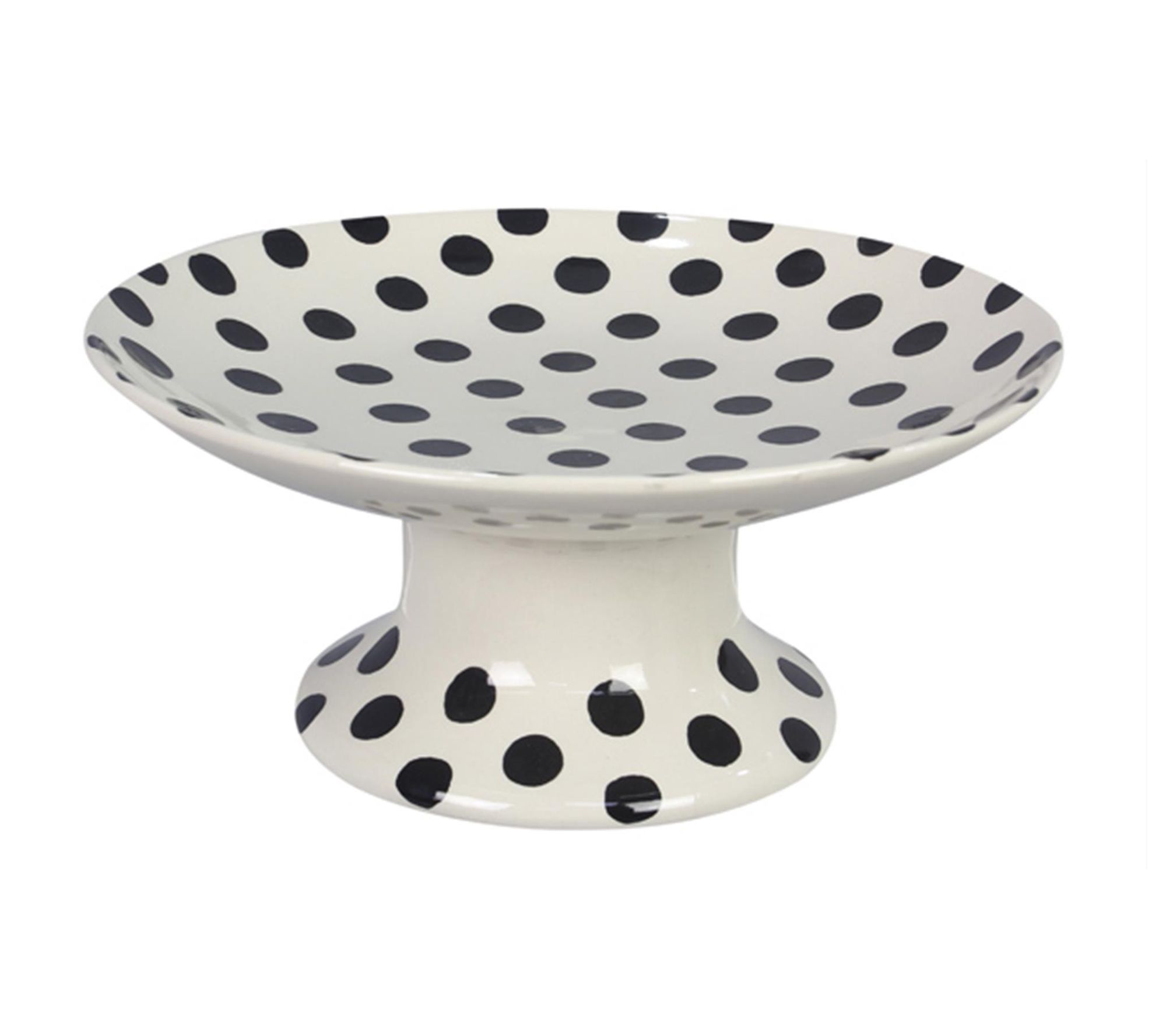 Young's Inc Stoneware Black & White Polka Dot Pedestal Plate