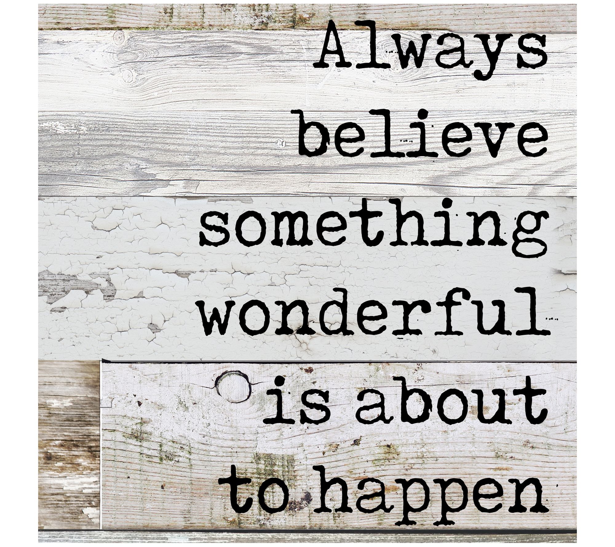 "Always believe something wonderful is about to happen." This wall art has a message that will inspire you every day while enhancing your decor. From Young's Inc.