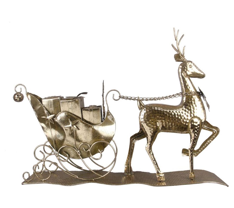 Young's metal Christmas deer pulling the sled tabletop decor