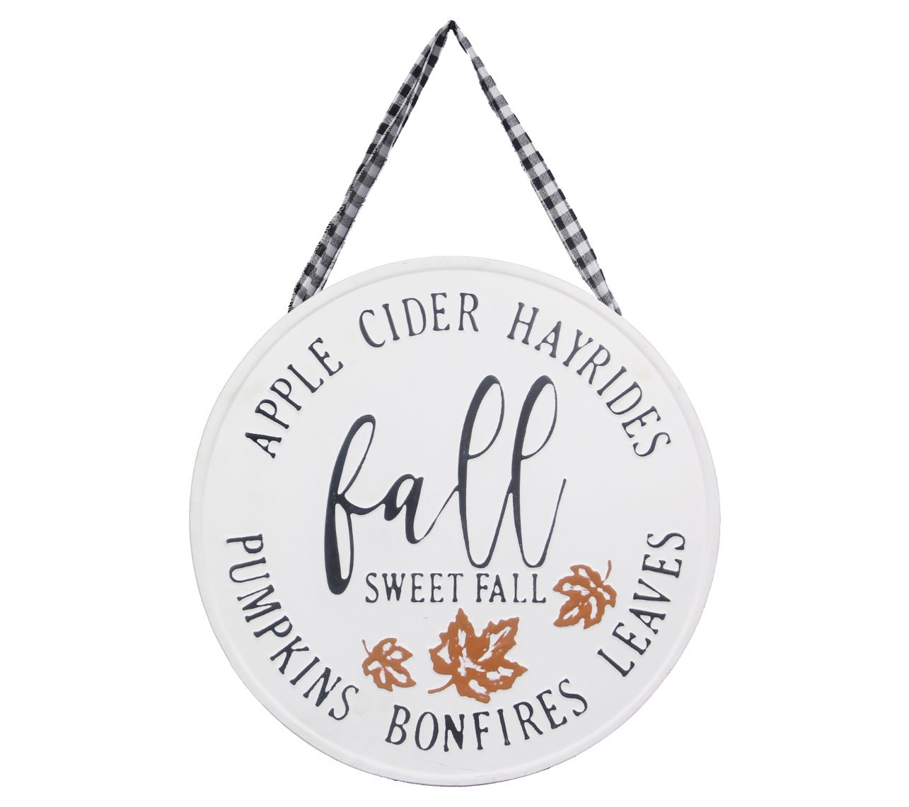 Celebrate the wonders of fall with this set of two metal wall signs, showcasing farmhouse-chic checkered ribbons, bright autumn accents, and uplifting messaging. From Young's Inc.