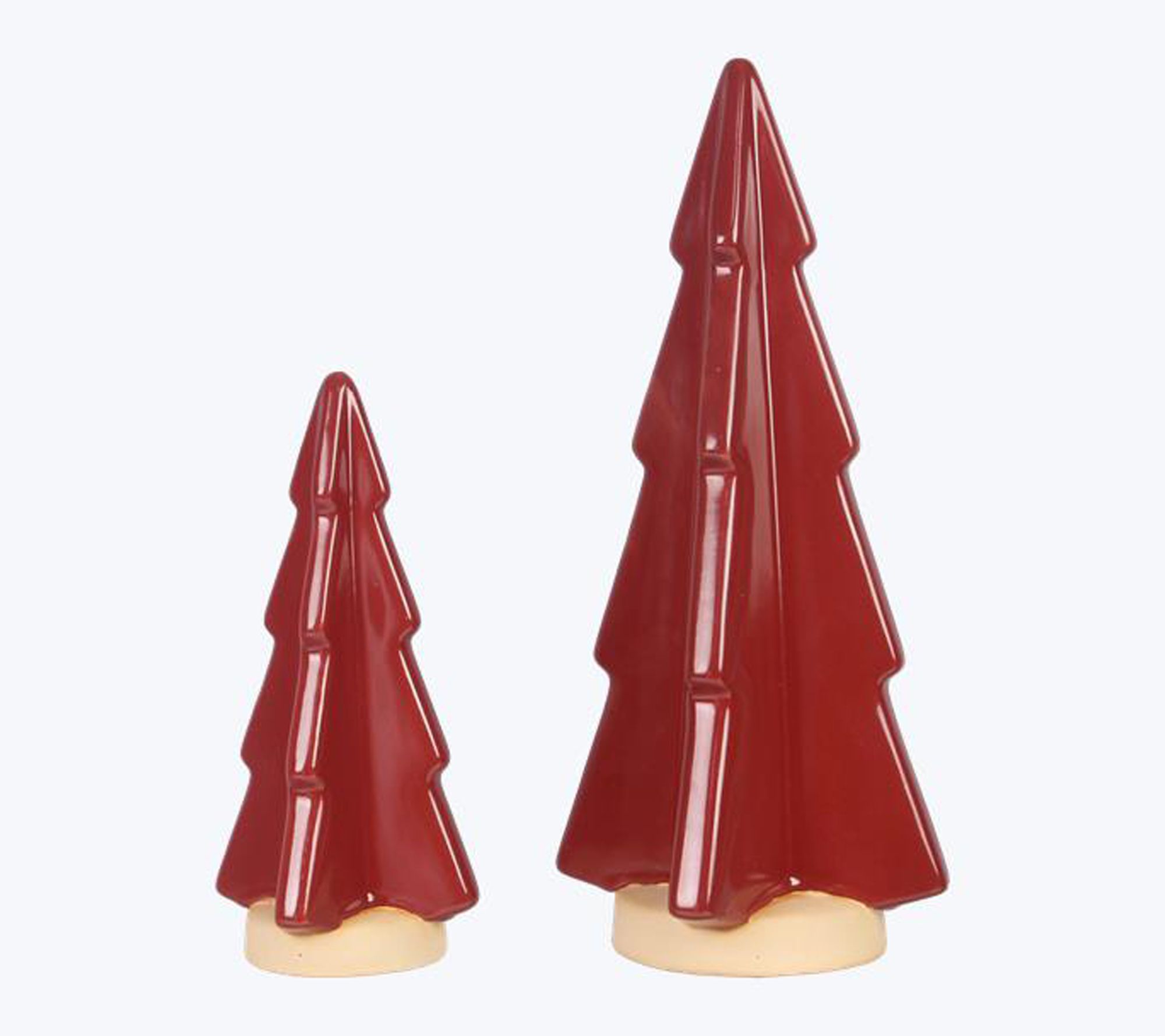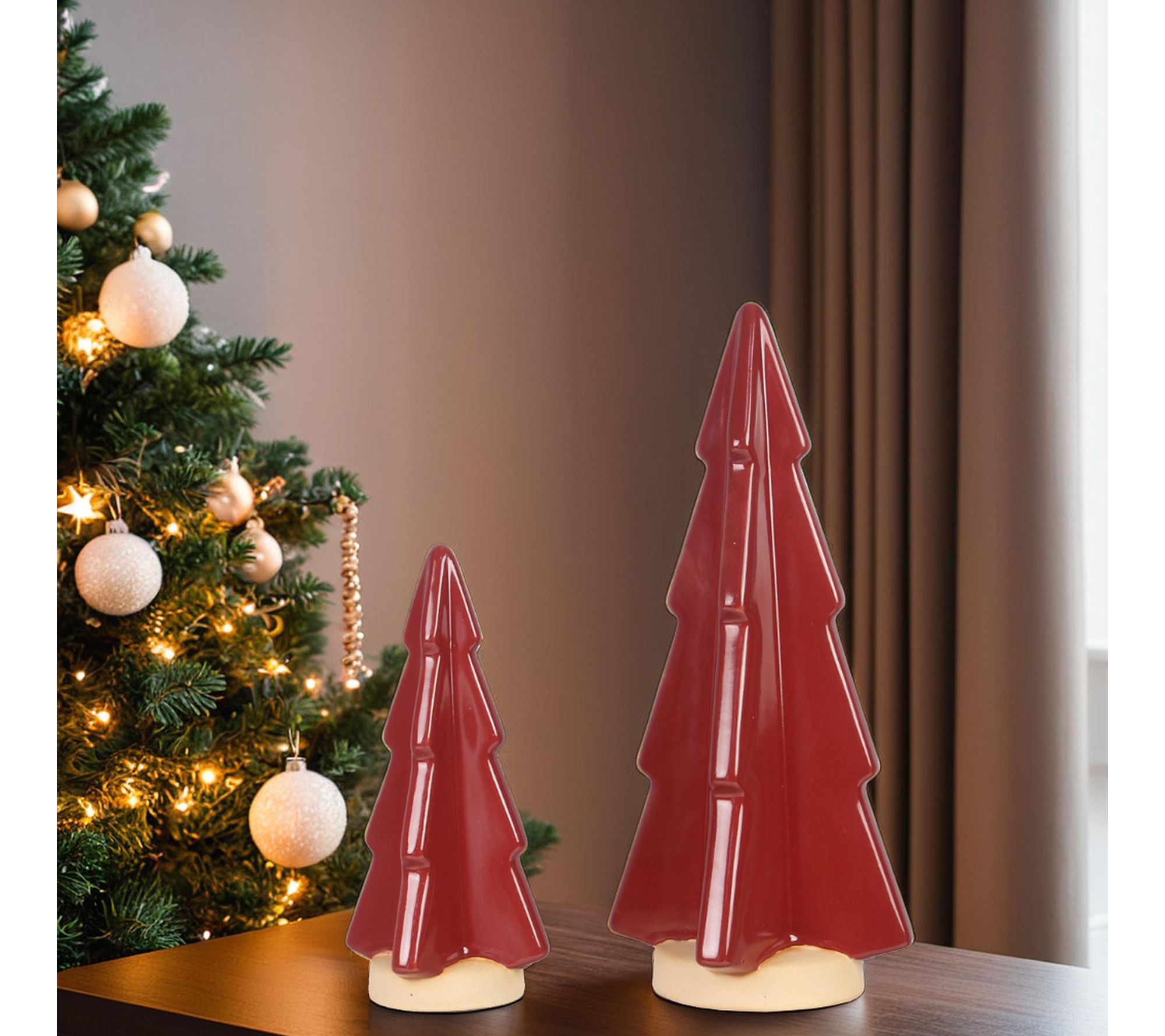 Young's Red Stoneware Christmas Tree Tabletop,Set of 2