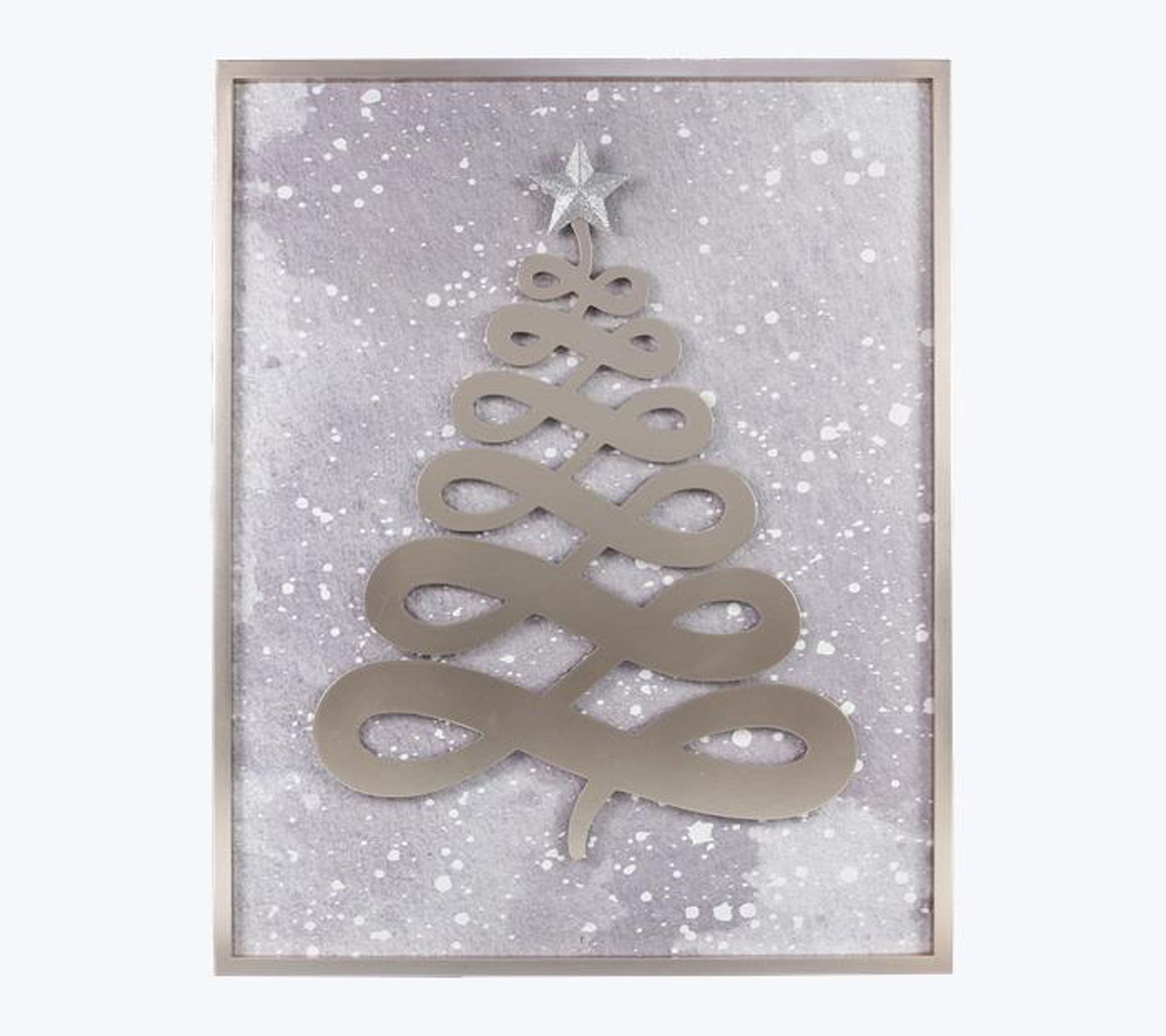 Add a festive touch to your holiday home with this wood glitz framed wall art featuring a silver tree illuminated by LED lights. The textured background and swirling cutout design create depth and dimension, while its glowing display offers a cozy ambiance for gatherings or quiet winter evenings. From Youngs.