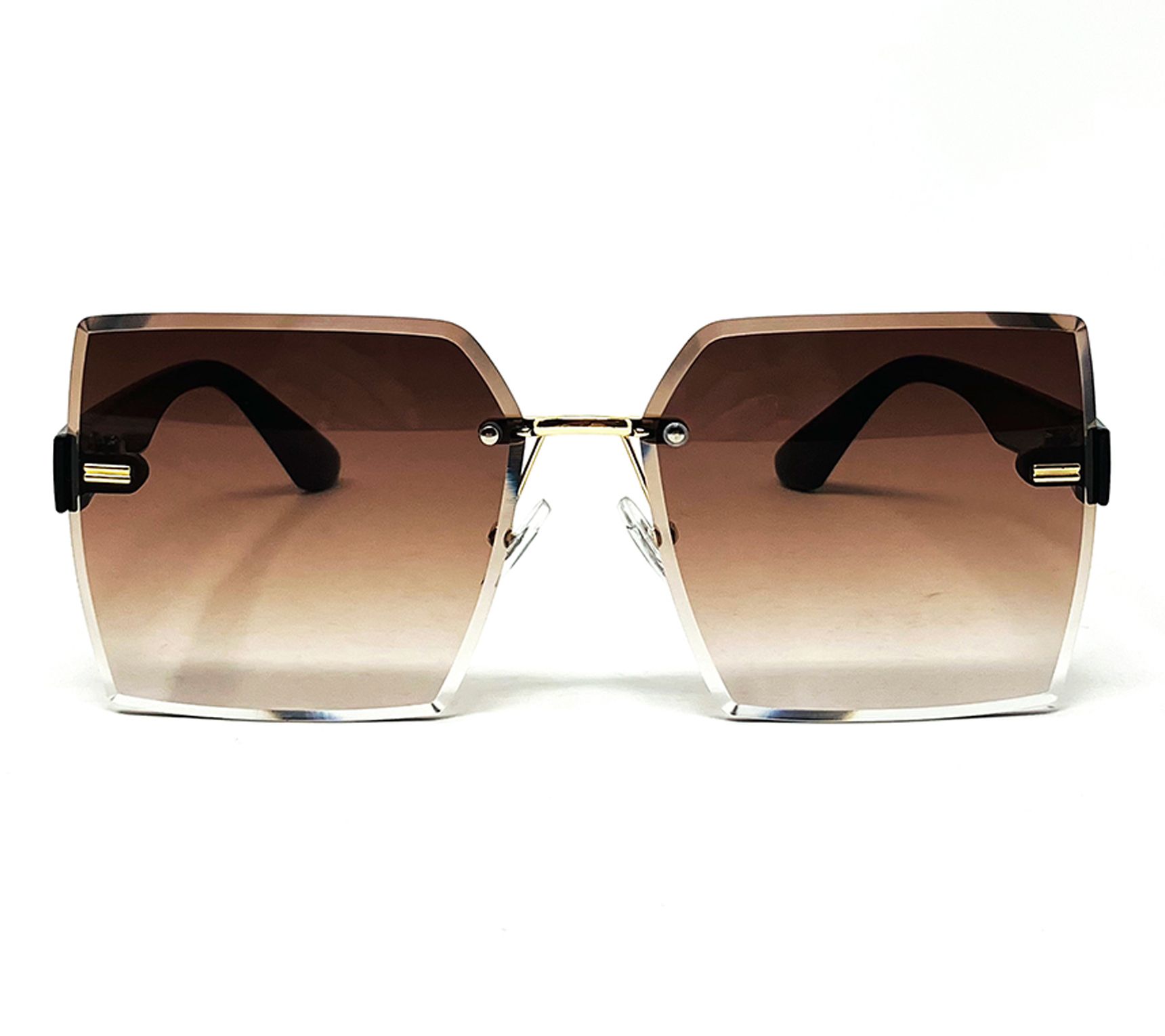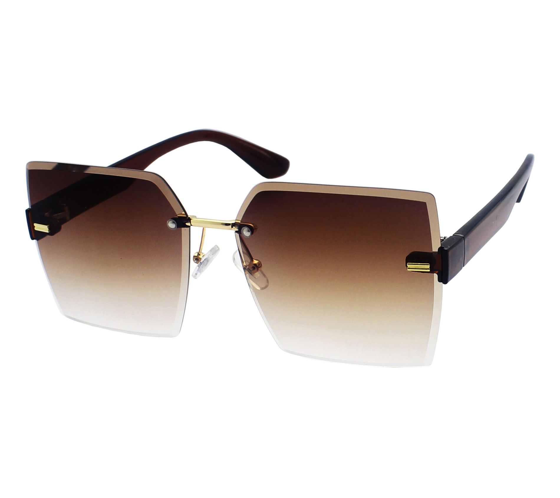 • Features: polarized lenses, plastic goldtone bridge and hinges, adjustable nose pads, brown plastic temples