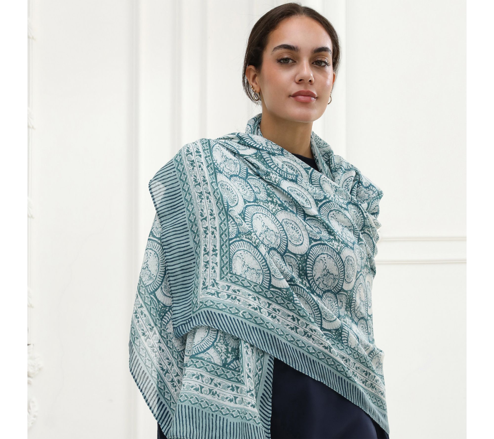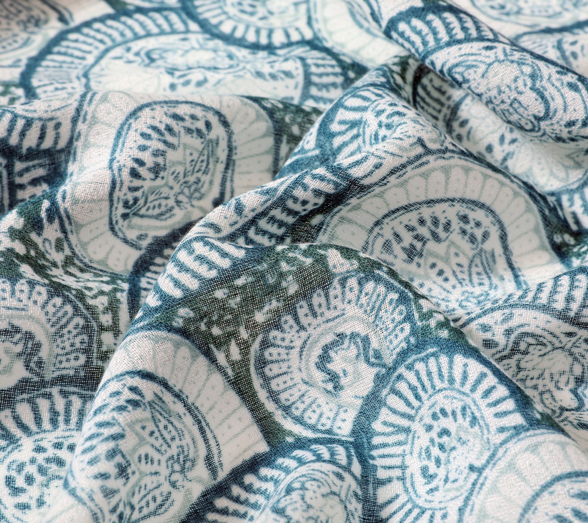 • Paisley-inspired pattern in blue-green tones