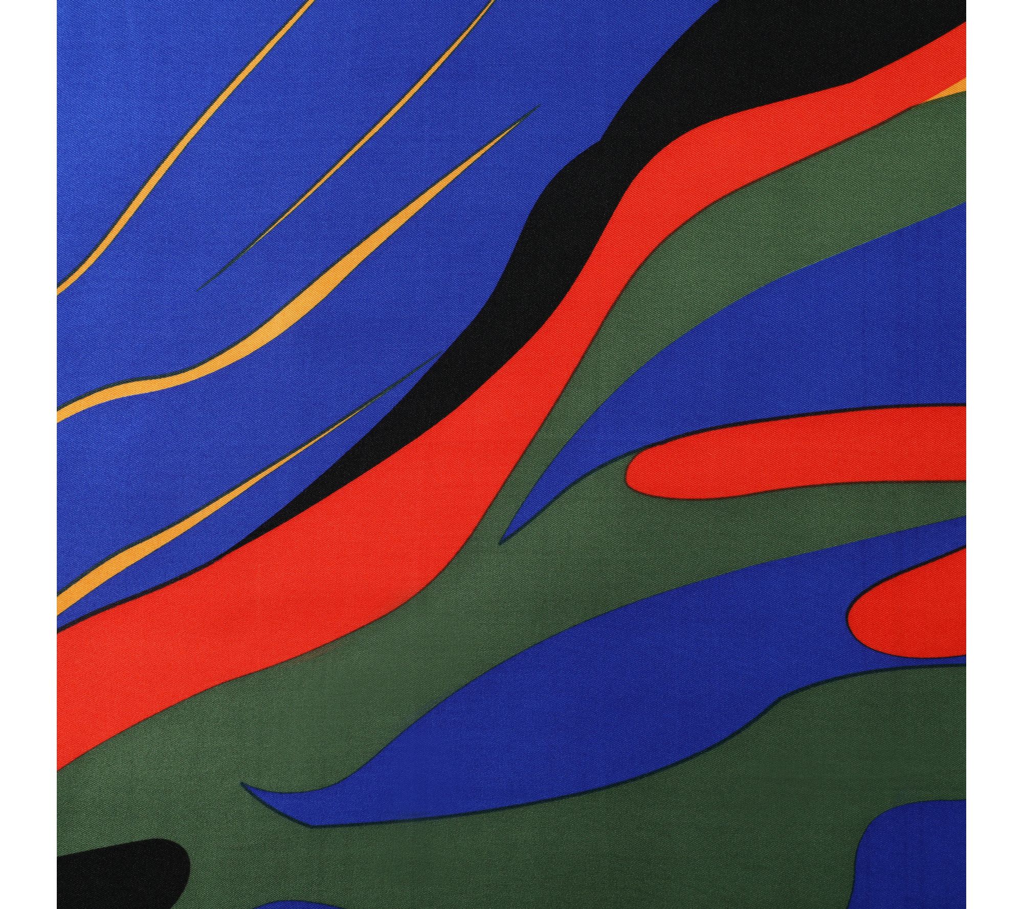 • Features: bold color blocks with navy, royal blue, forest green, and orange; contemporary graphic pattern