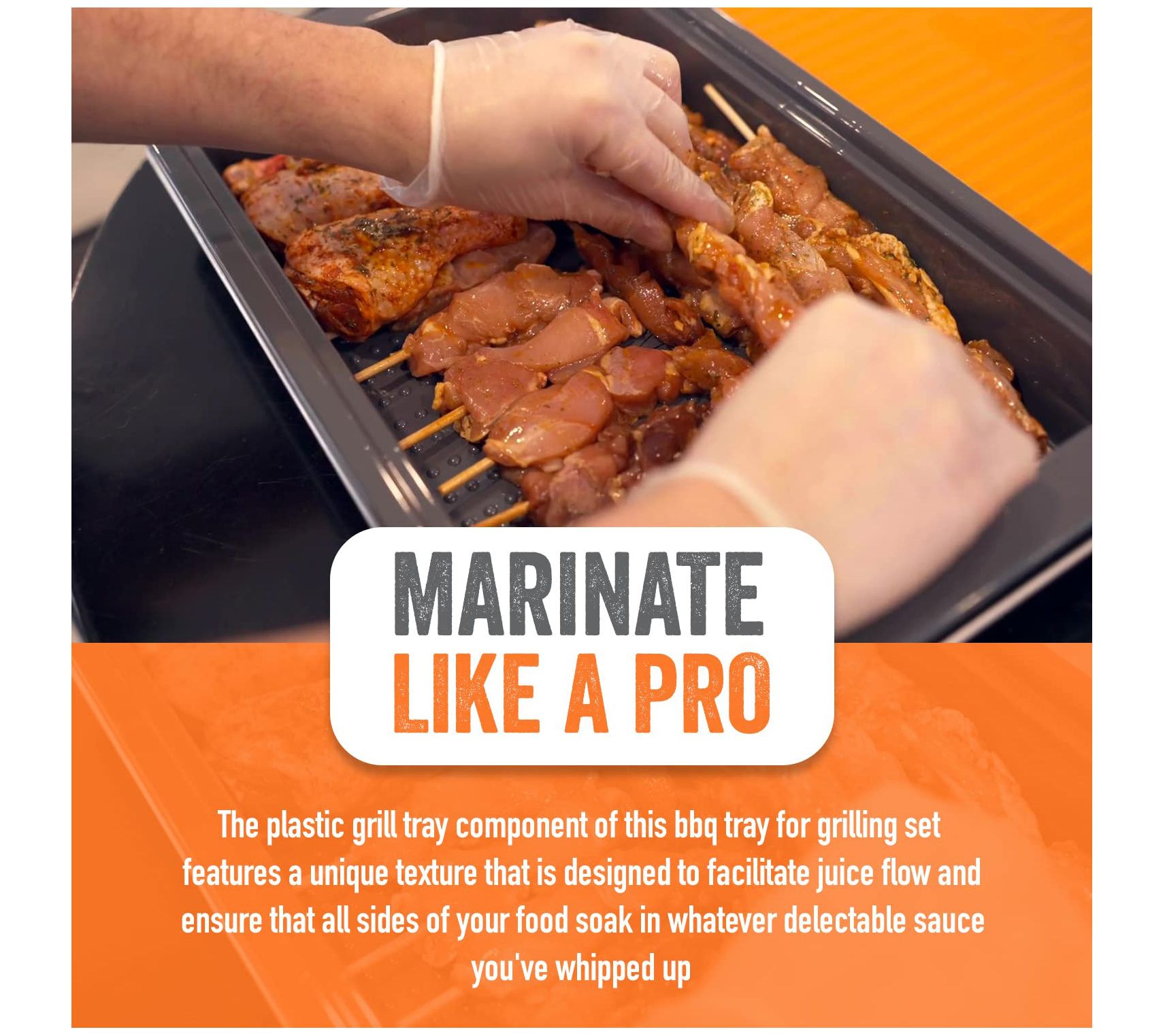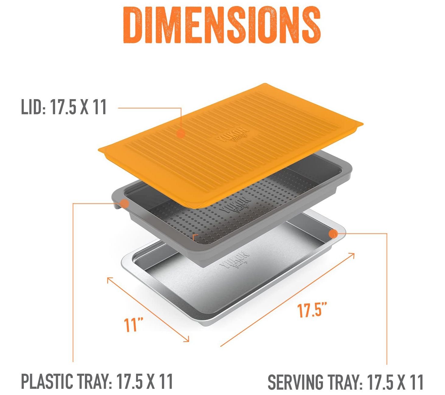 With a plastic tray that's perfect for prepping raw foods, a stainless steel serving tray, and a snap-on lid, this three-piece set is perfect for marinating and grilling like a pro, and the clever nesting design makes storage a breeze. From Yukon Glory.