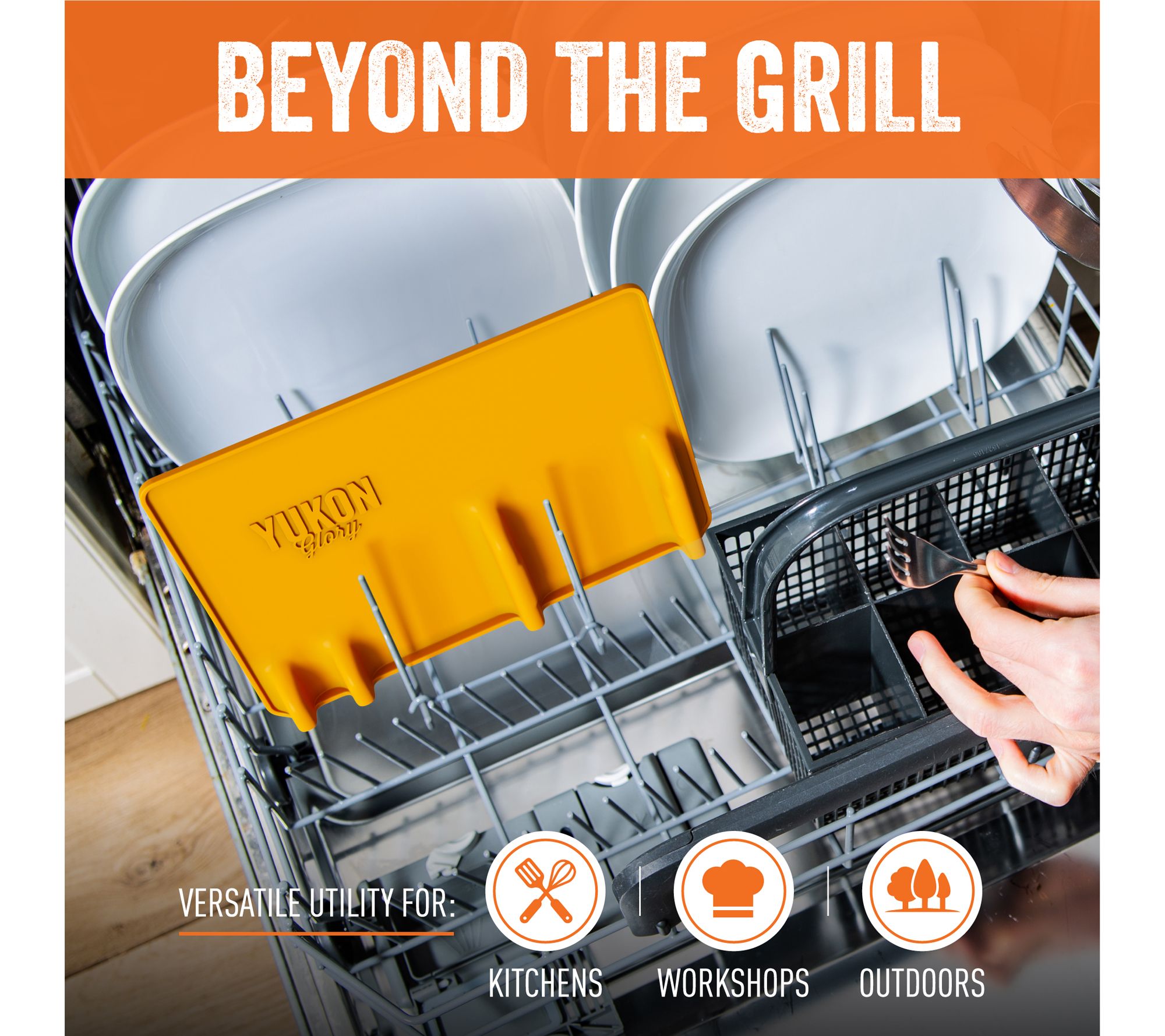 Keep your grilling tools organized with this silicone mat. It provides a secure spot for your spatulas, tongs, and brushes, and it's easy to clean in the dishwasher. From Yukon Glory.