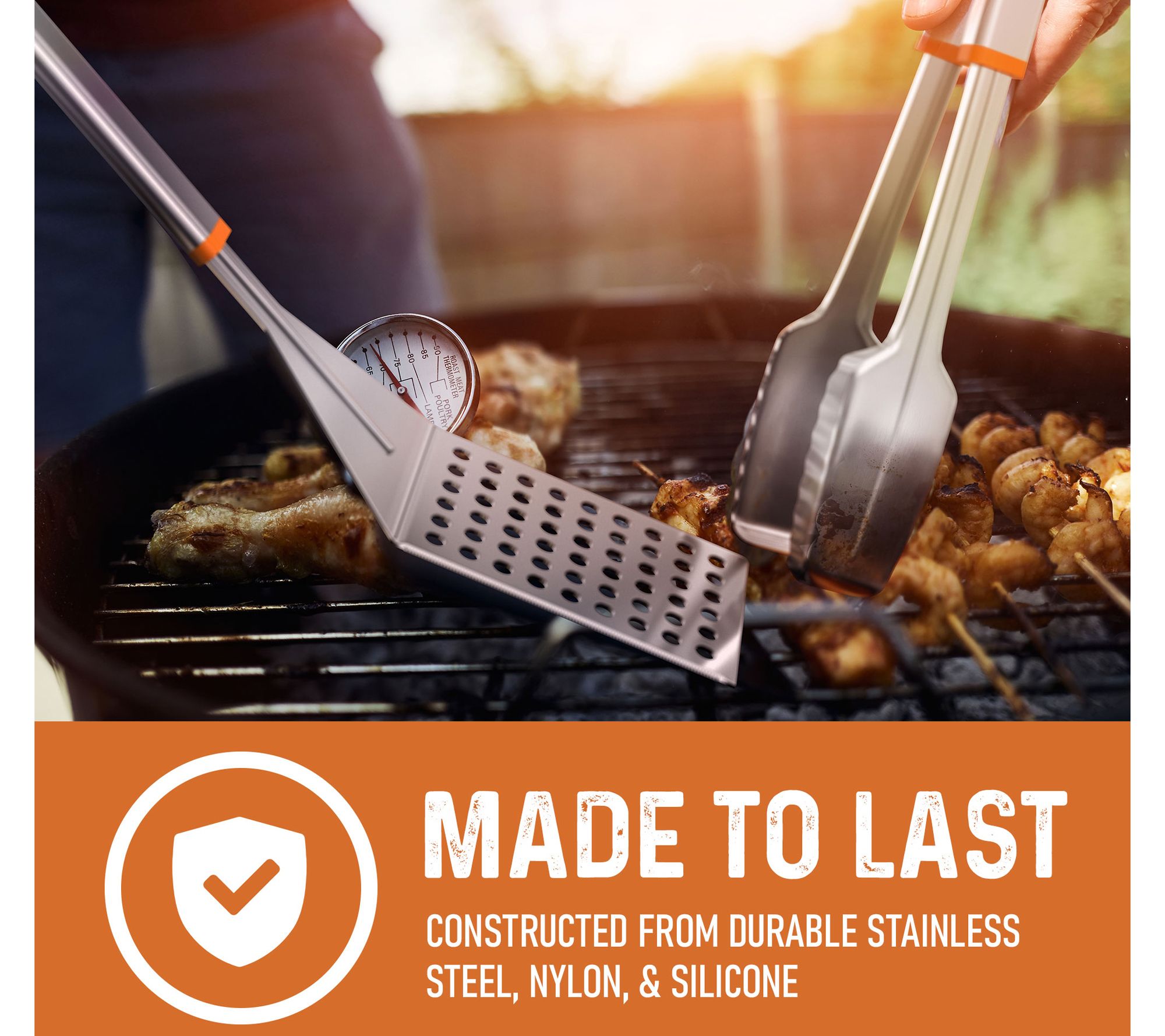 This versatile kit includes everything you need to master your barbecue, from a spatula to a rotating drip tray. Make grilling a breeze with this durable, stainless steel set. From Yukon Glory.