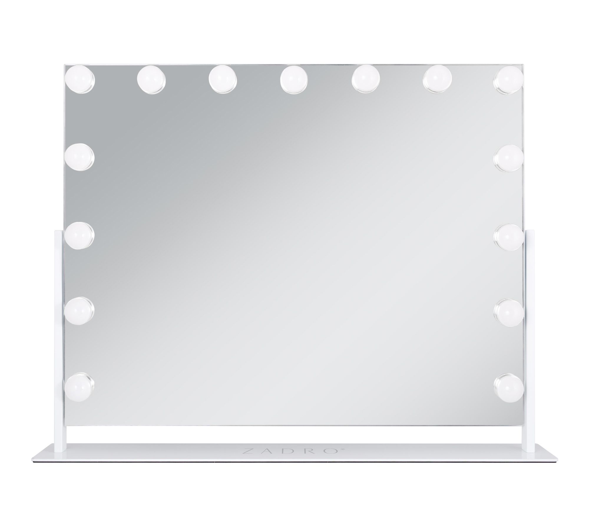 Feel like a celeb with every view. This free-standing vertical makeup mirror mimics the Hollywood heyday of movie-star dressing rooms with backstage-style marquee LED bulbs, perfect for budding performers and professionals alike -- or glam-loving gals of all ages. Adjustable light settings and brightness levels let you customize your look. Get ready for your close-up! From Zadro.