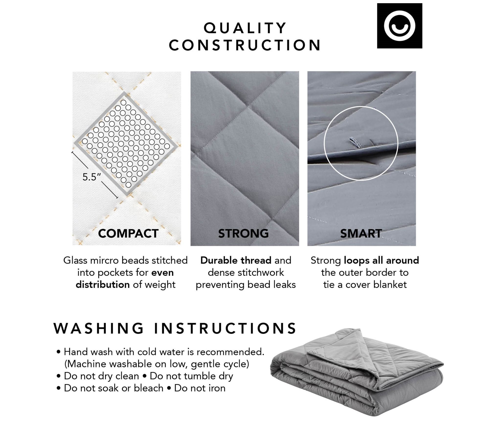 • Blanket weight must not exceed 10% of wearer's body weight