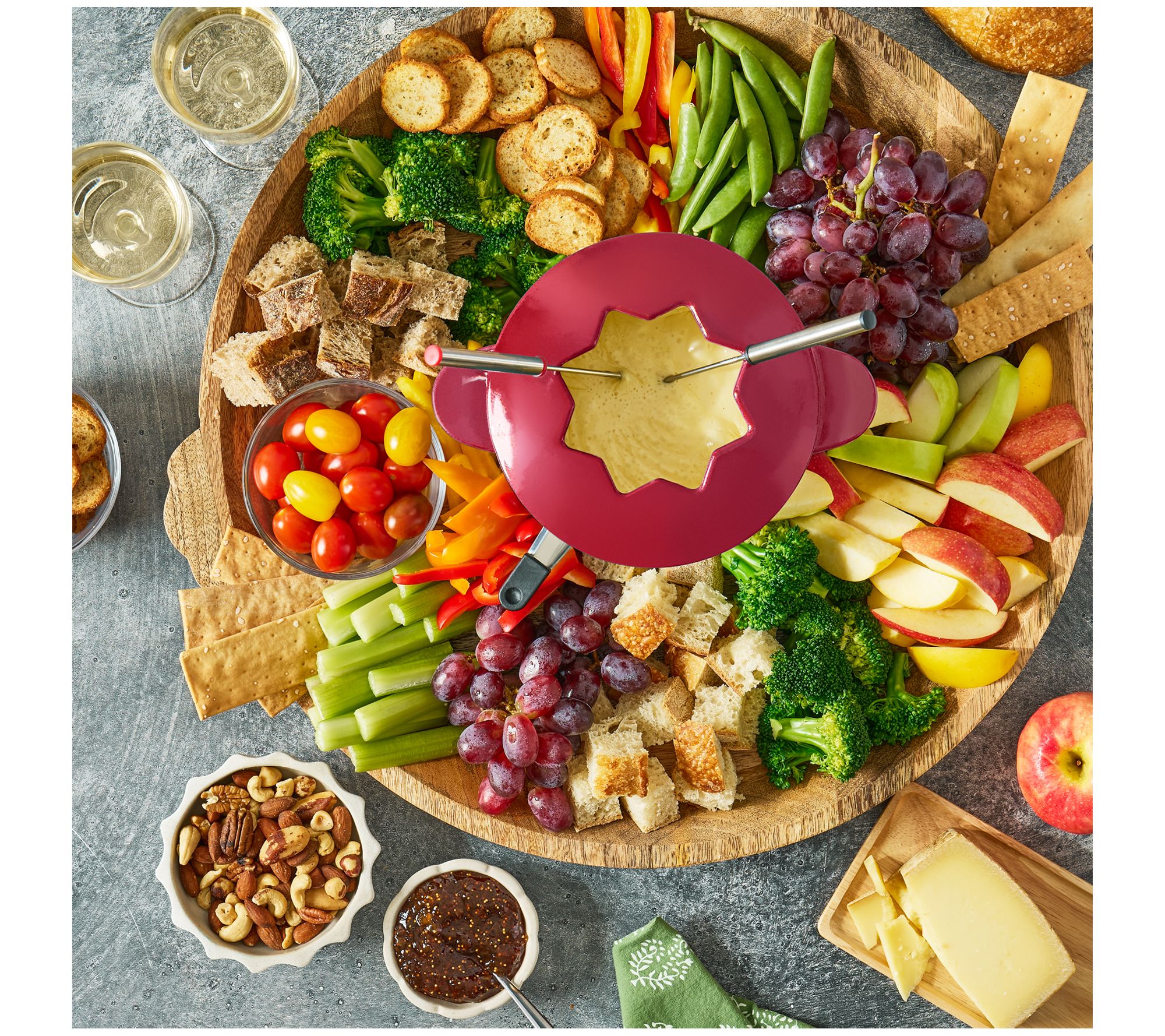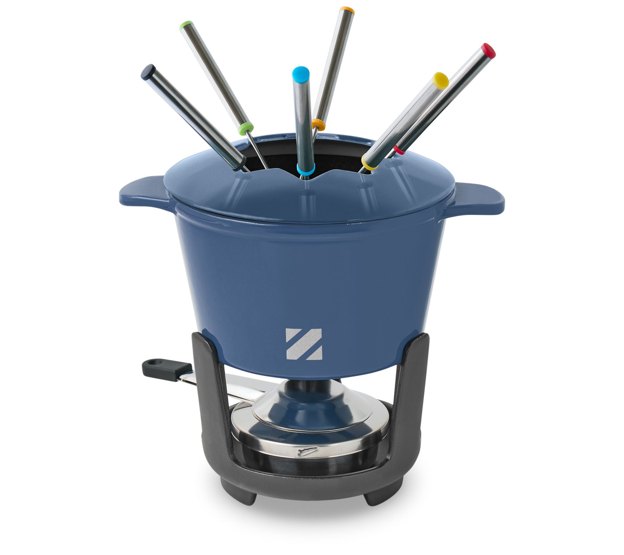 Have fondue, will travel! With this non-electric fondue maker, you can dip into deliciousness just about anywhere. Just add your favorite cheeses or chocolates and let chafing fuel gently melt everything to the perfect consistency. Designed with cast iron for even heating, it comes complete with stainless steel fondue forks so everyone can join in the fun, from appetizers to dessert. From Zakarian by Dash.