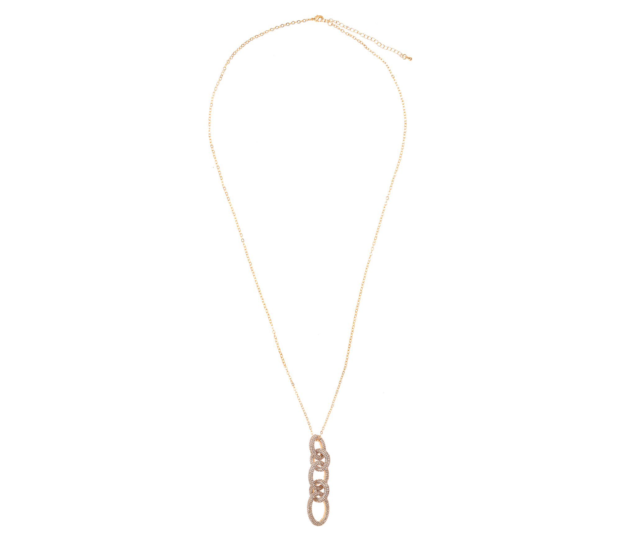 Add a touch of sparkle to your ensemble with the Zaxie x Stefanie Taylor goldtone link necklace. Featuring a pave crystal-encrusted three-chain link design, this piece is perfect for elevating your everyday look or adding a bit of glam to a special occasion. From Zaxie.