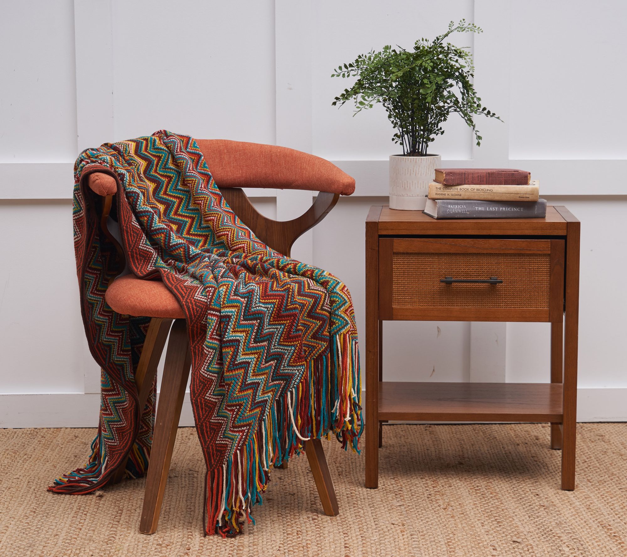 Zig Zag Sedona Tassel Throw Blanket by Valerie