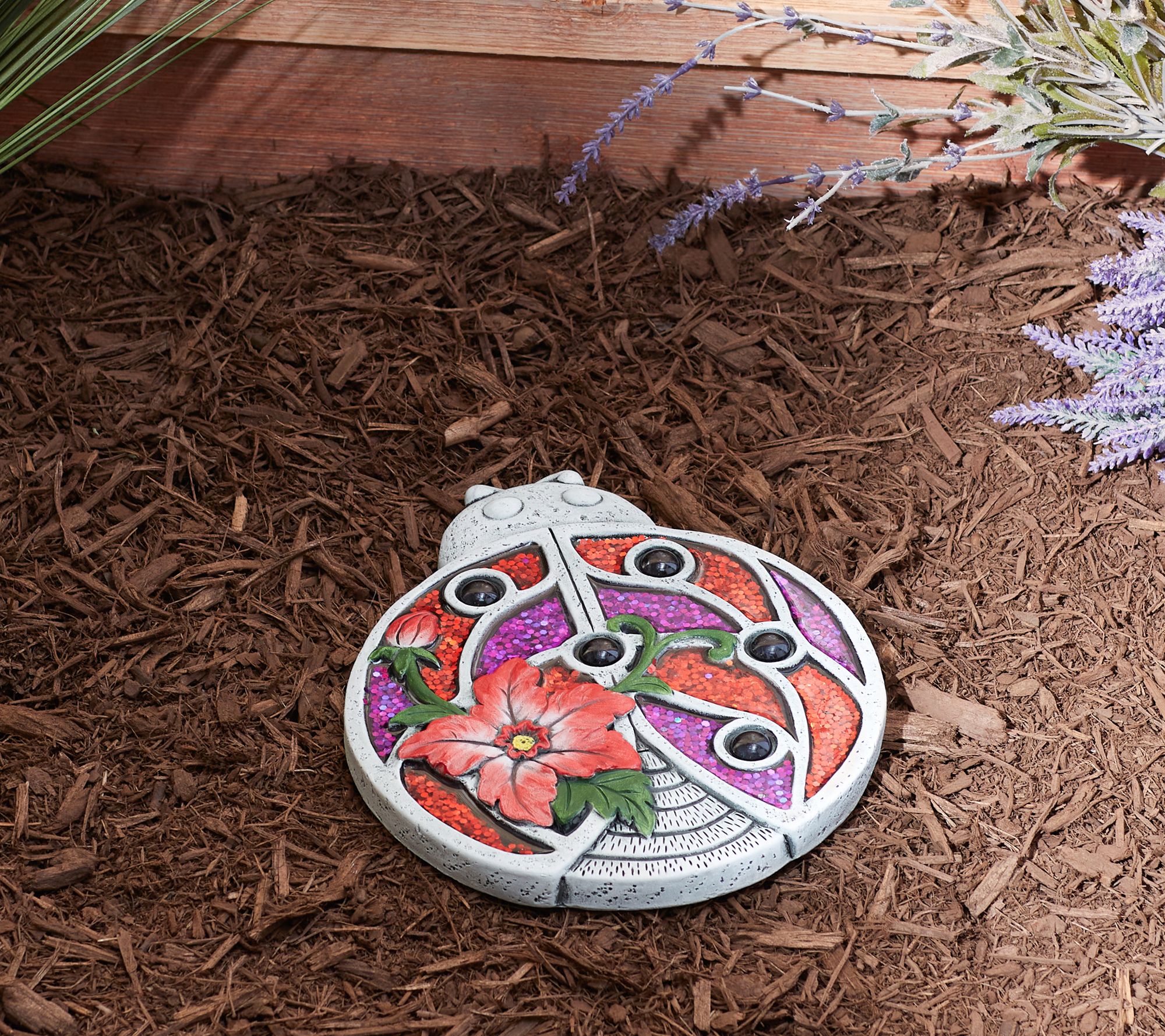 An ideal accent for your garden, backyard, or winding pathway, this bejeweled ladybug stepping stone adds personalized charm and whimsy to your outdoor space. (The glitter overlay sparkles in the sunlight.) From Zingz & Thingz.