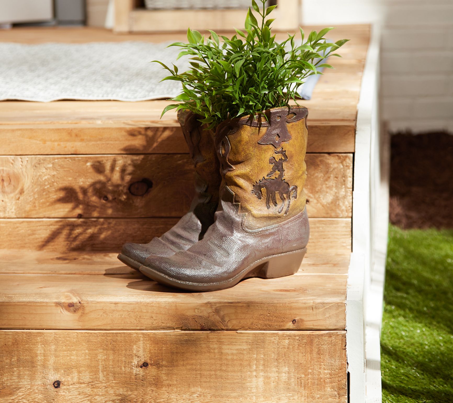 Put a playful twist on your plant display with this unique planter shaped like a pair of cowboy boots. From Zingz & Thingz.