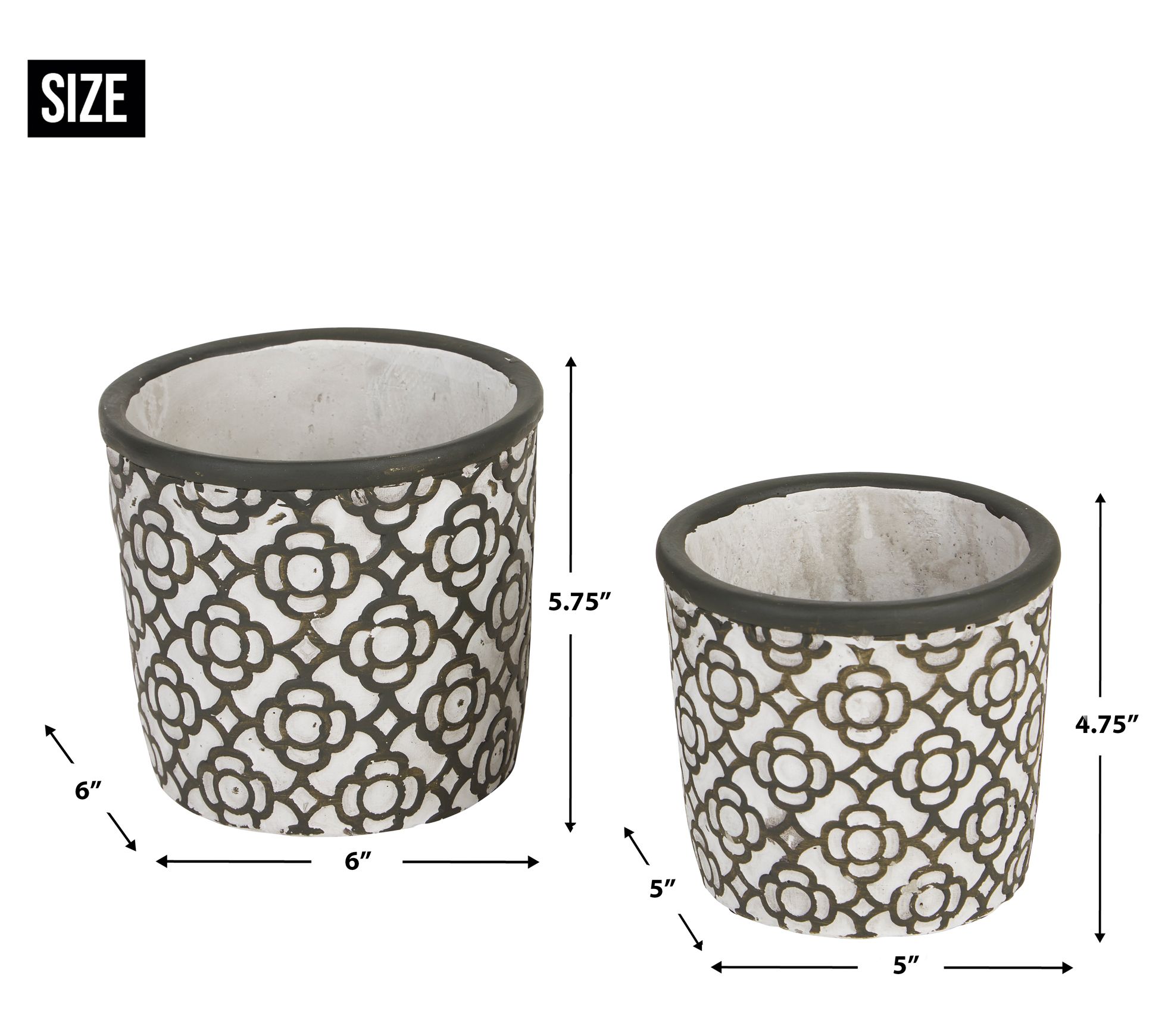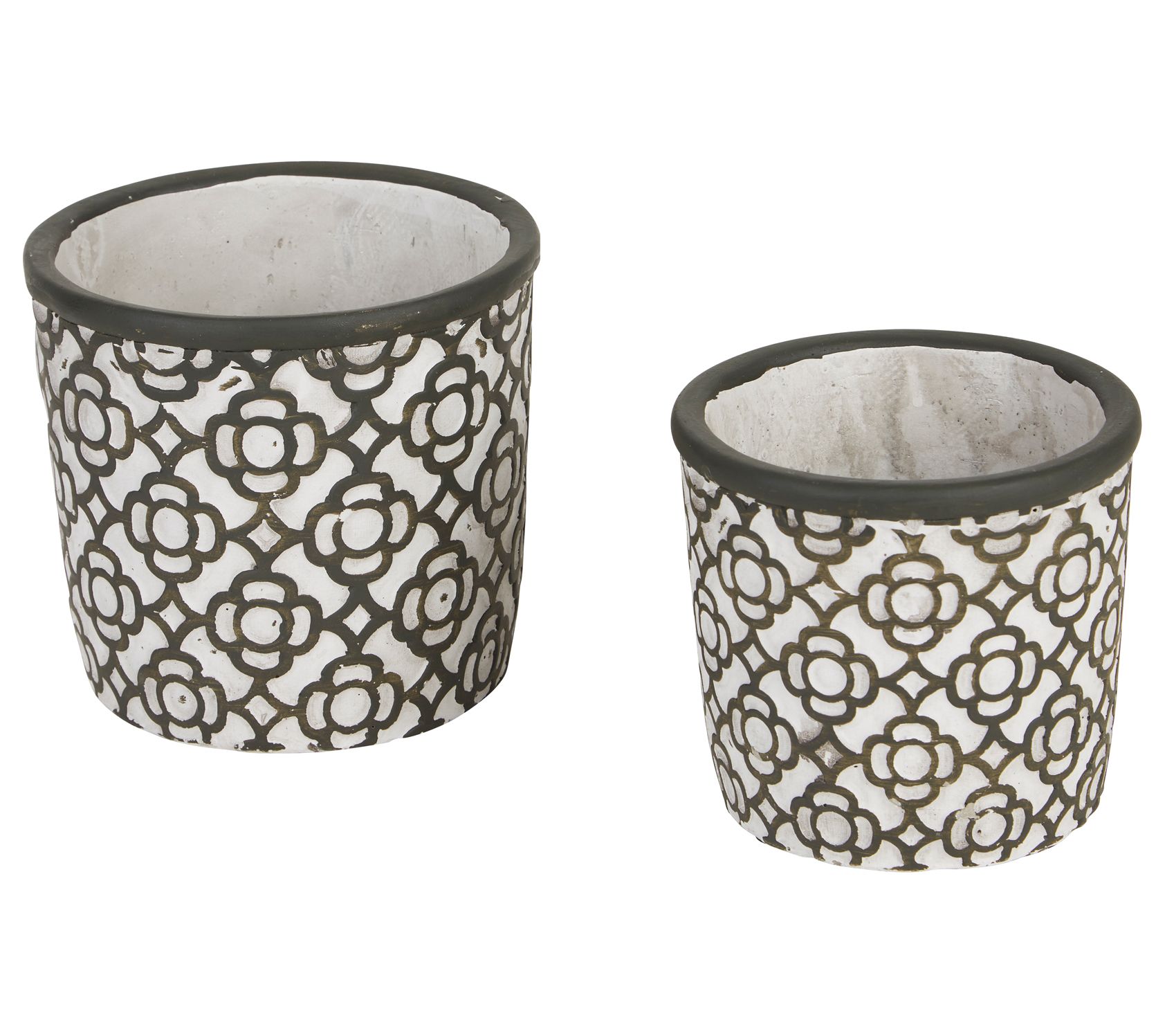 Zingz & Thingz Dark Gray Latti ce Cement Flowe r Pot Set\2