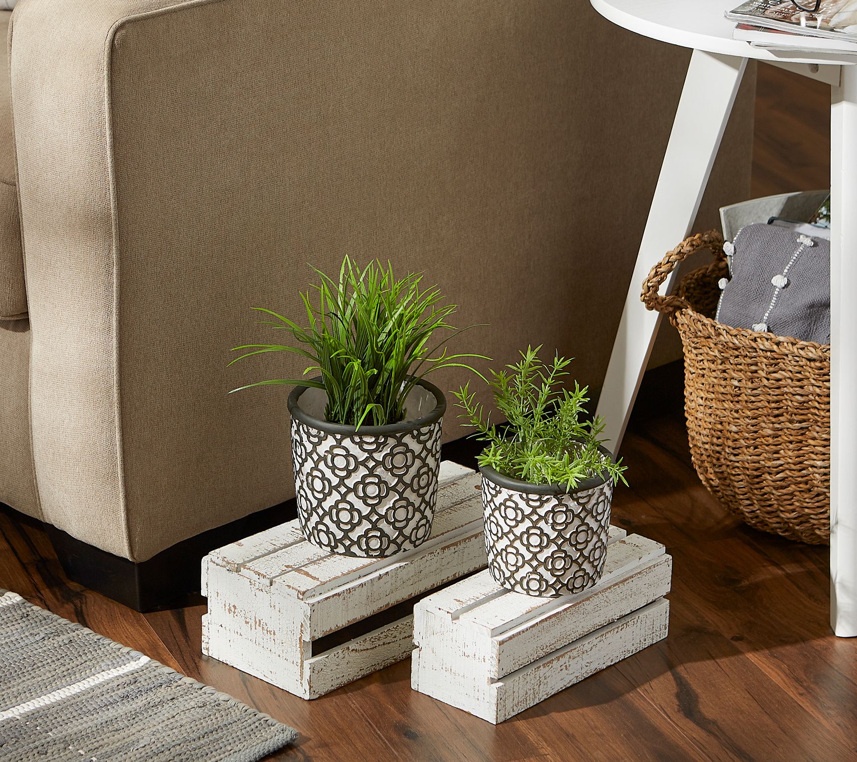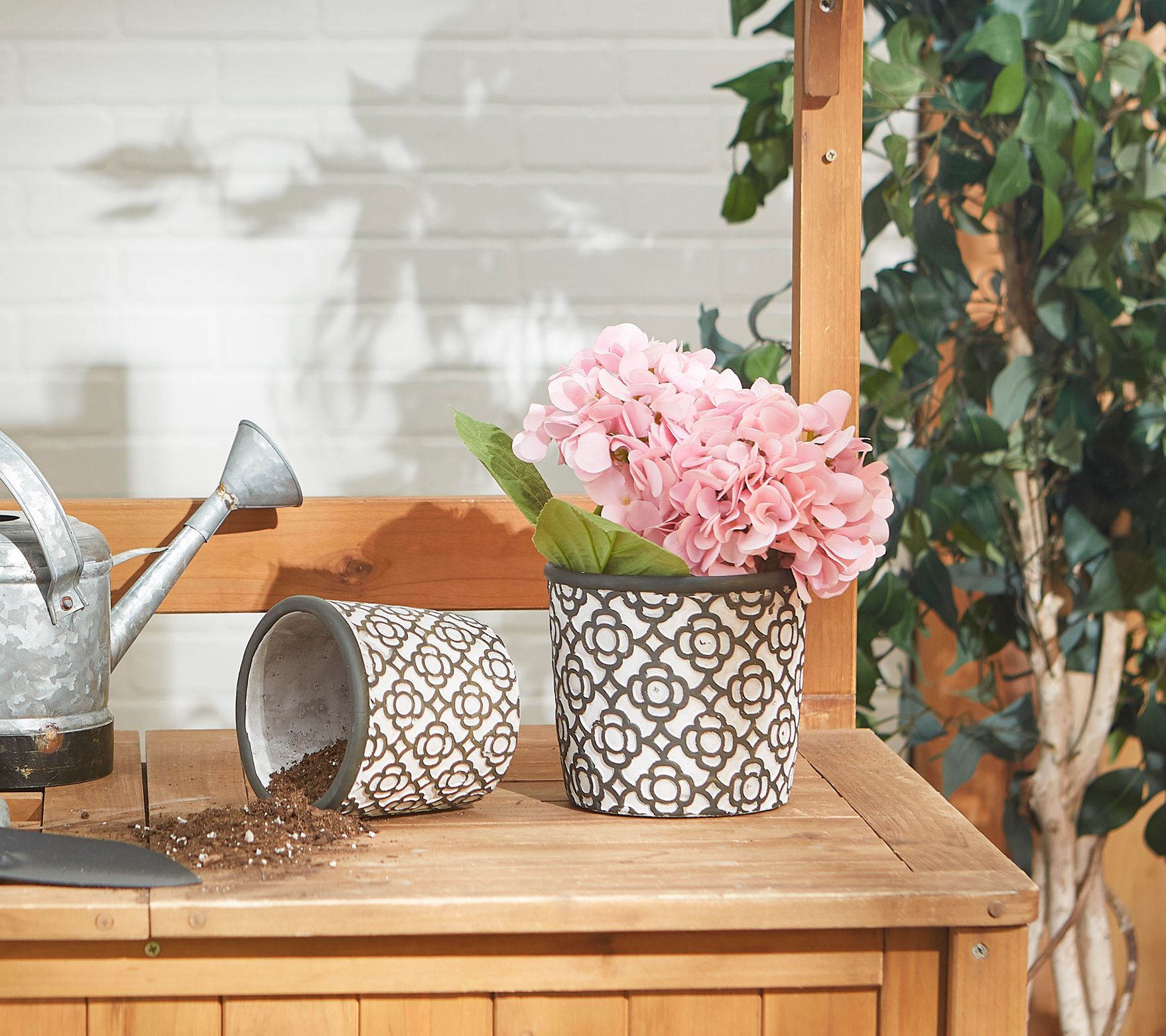 Coordinate your patio display with this matching set of flower pots decorated with a charming geometric motif. From Zingz & Thingz.